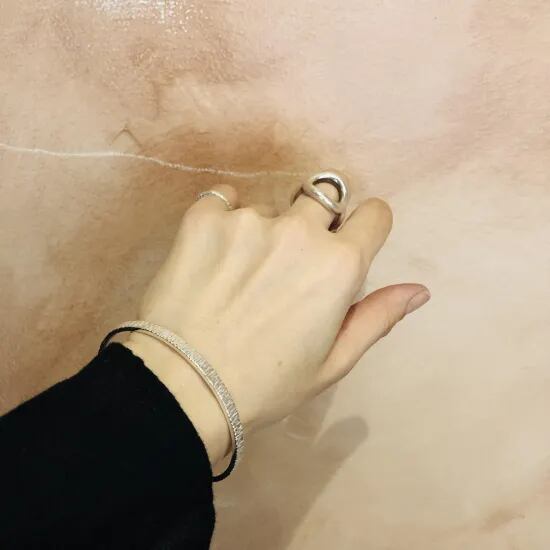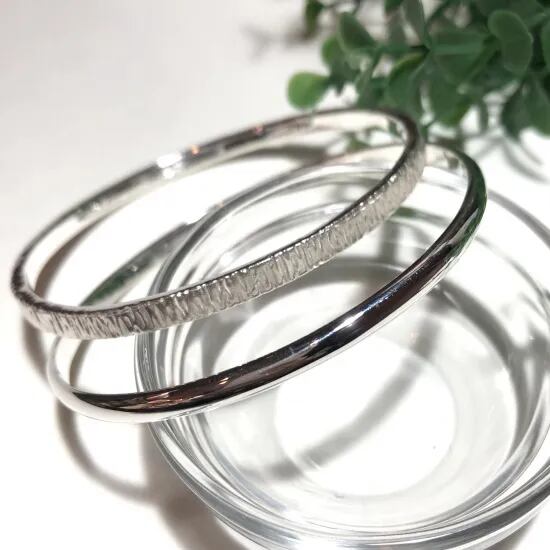 *白っぽい輝きが楽しめる、純銀を贅沢に使用したやや厚みのあるタイプ