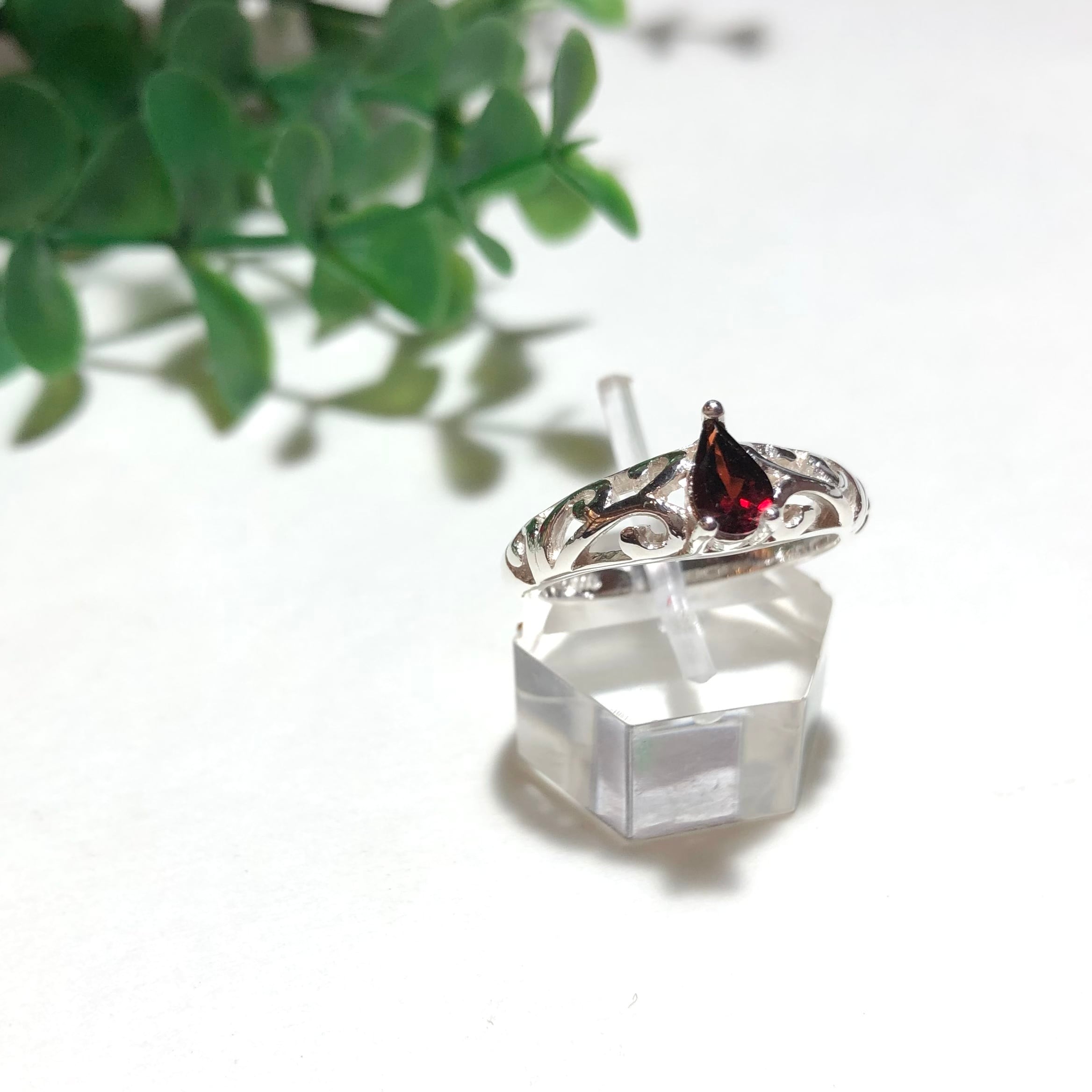 サイズ入荷!純銀製*ドロップストーン ガーネット透かしリング 1月誕生石