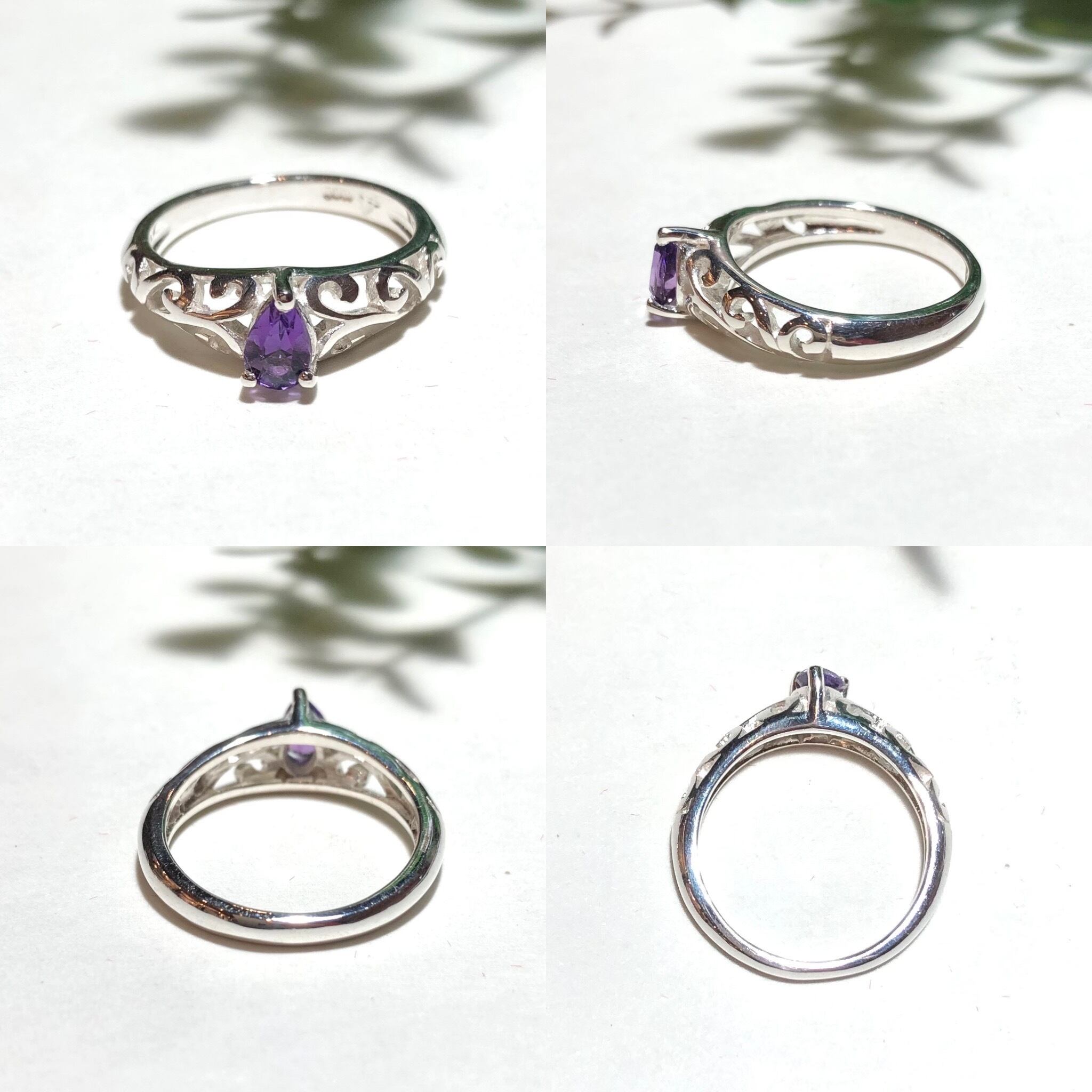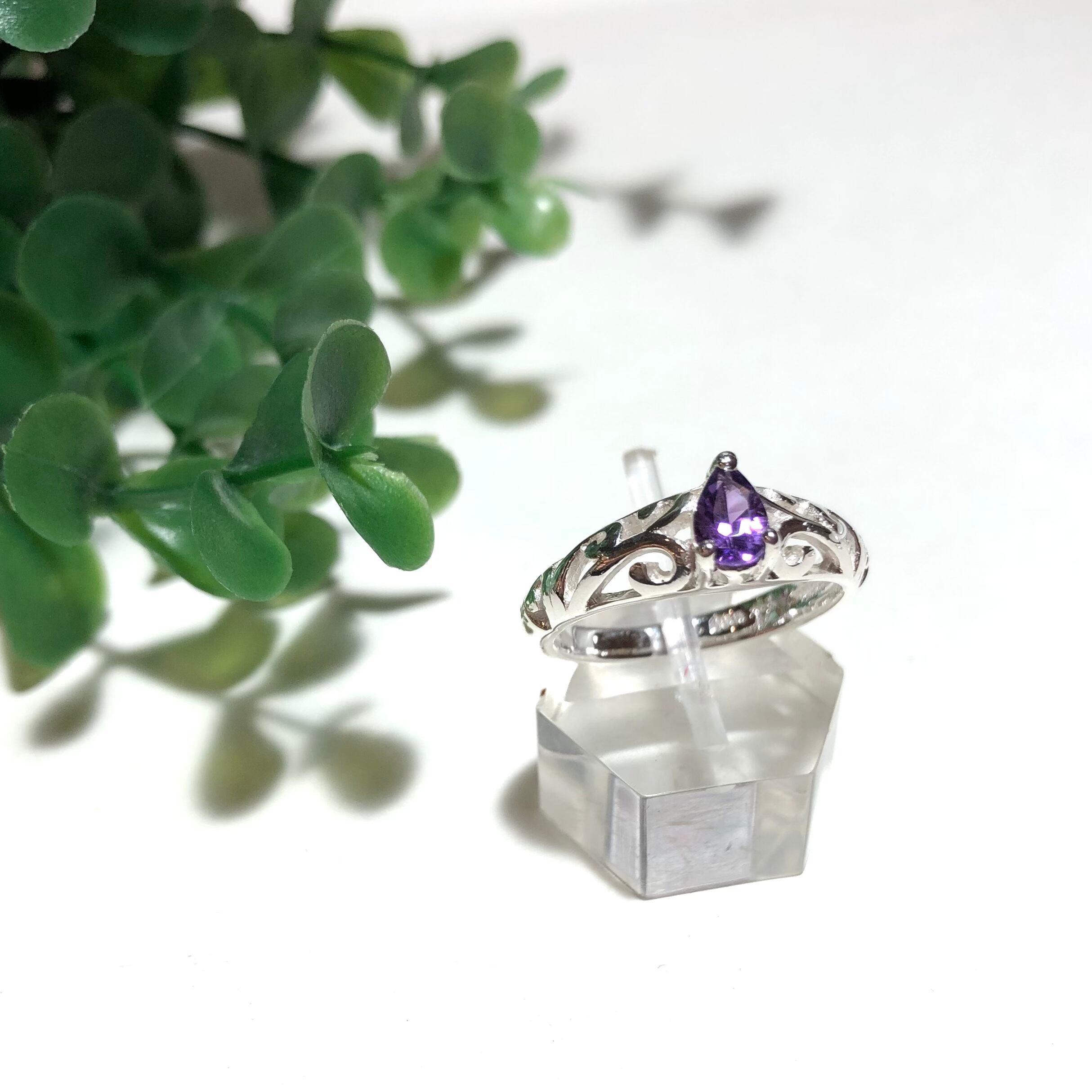 純銀製*ドロップストーン アメジスト透かしリング 2月誕生石