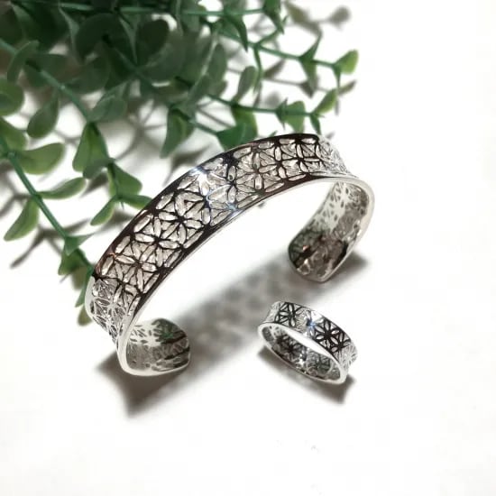 *フラワーオブライフ…生命の起源の図形や、宇宙の秩序・黄金比とされる。魔除けやヒーリング、お守りとしても使われる模様です