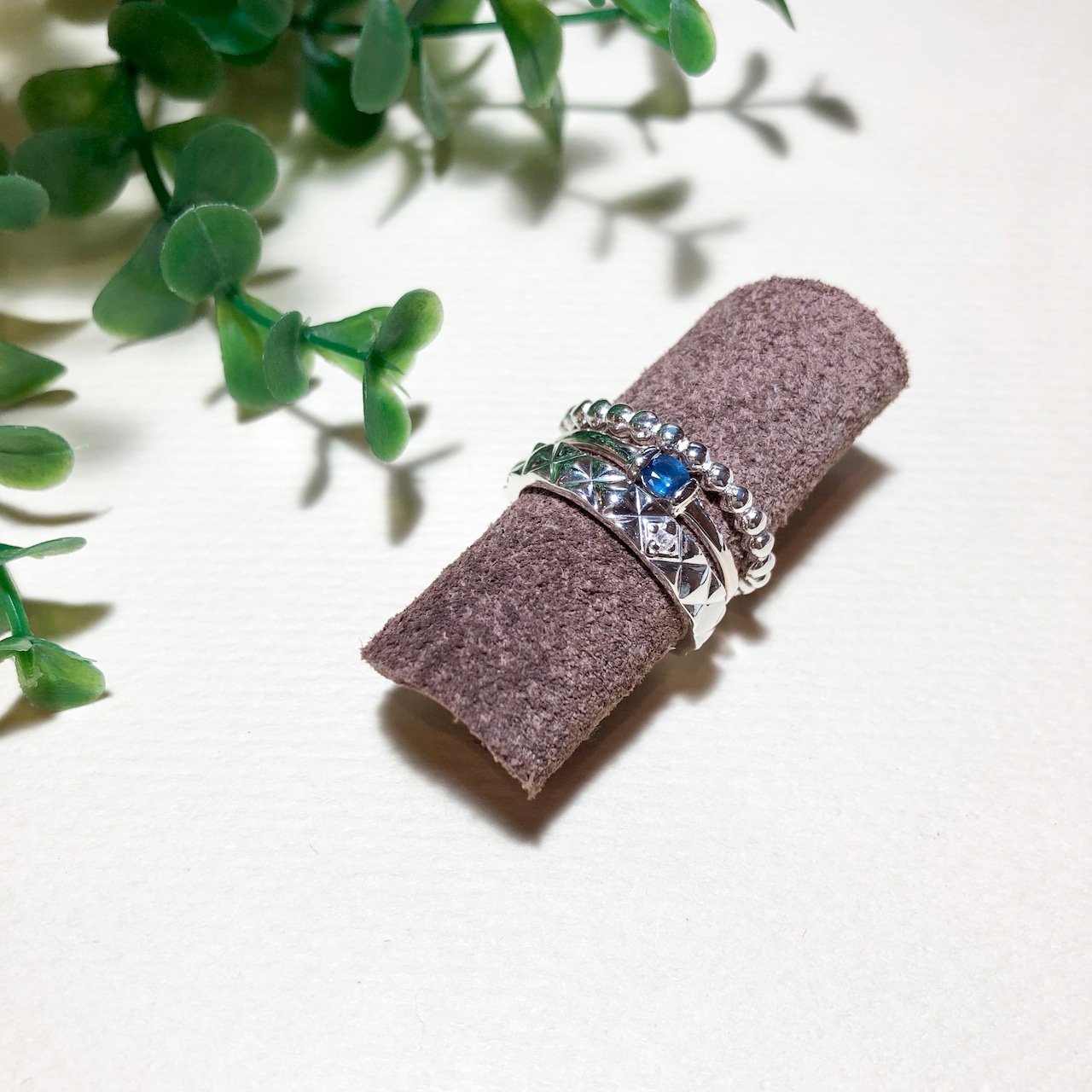別売りつぶつぶリング、ブルーサファイアリングと重ね付け
