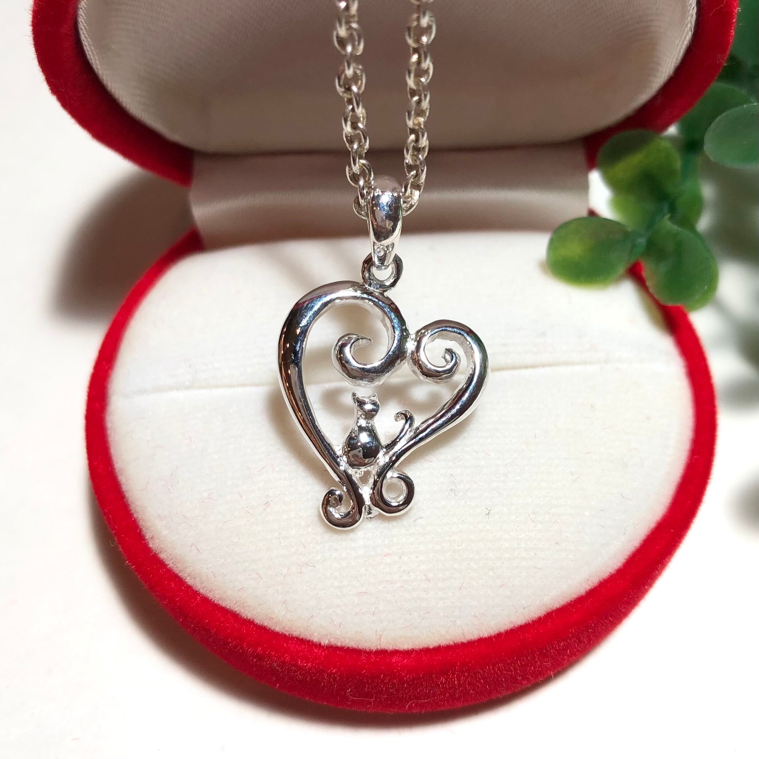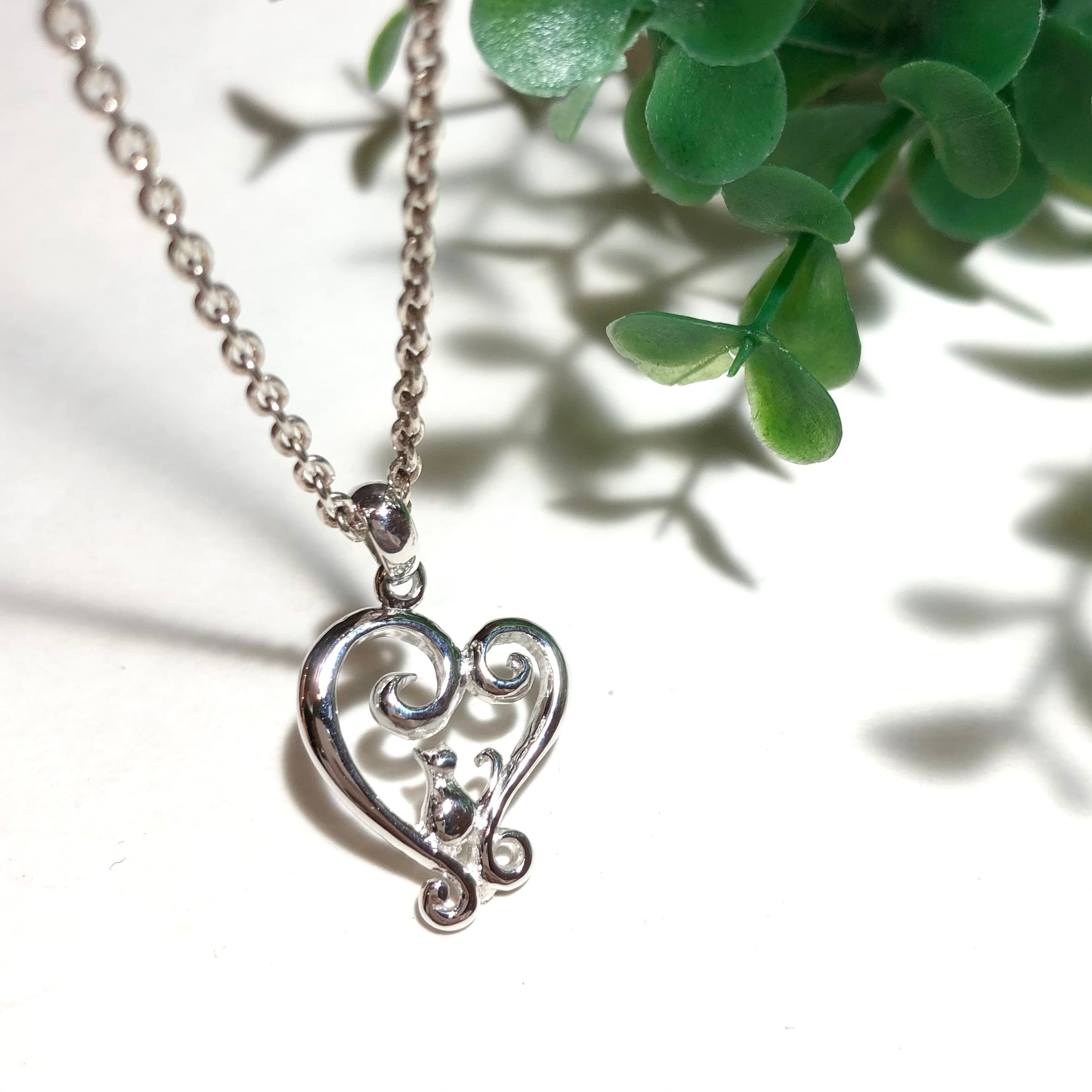 再入荷!純銀製*ハート&ねこの透かしペンダント