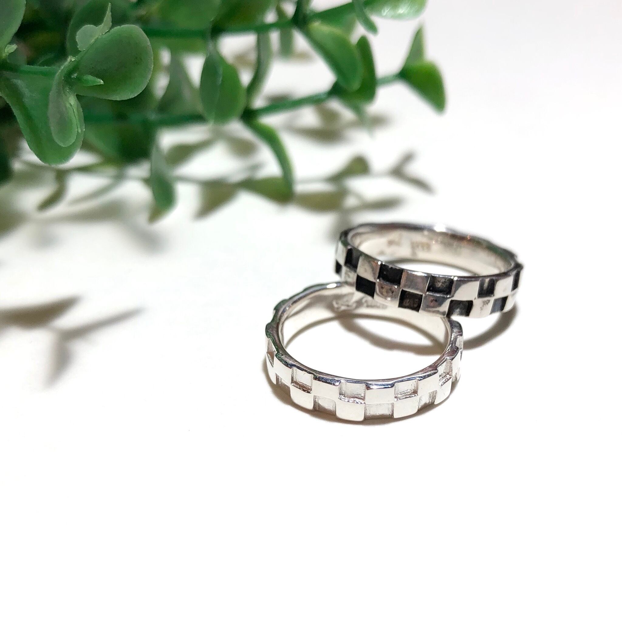 サイズ入荷!純銀製*チェッカーリング スリムタイプ