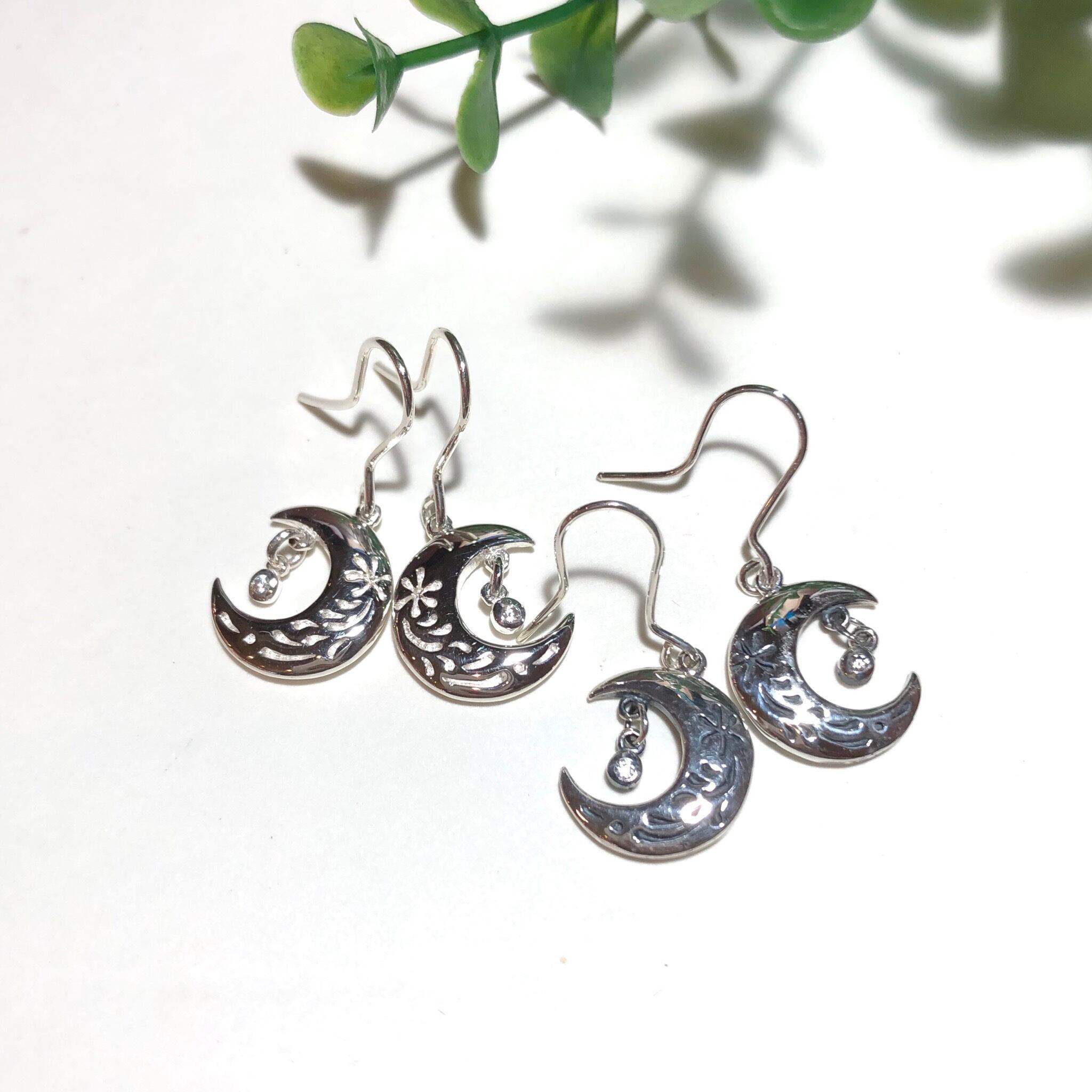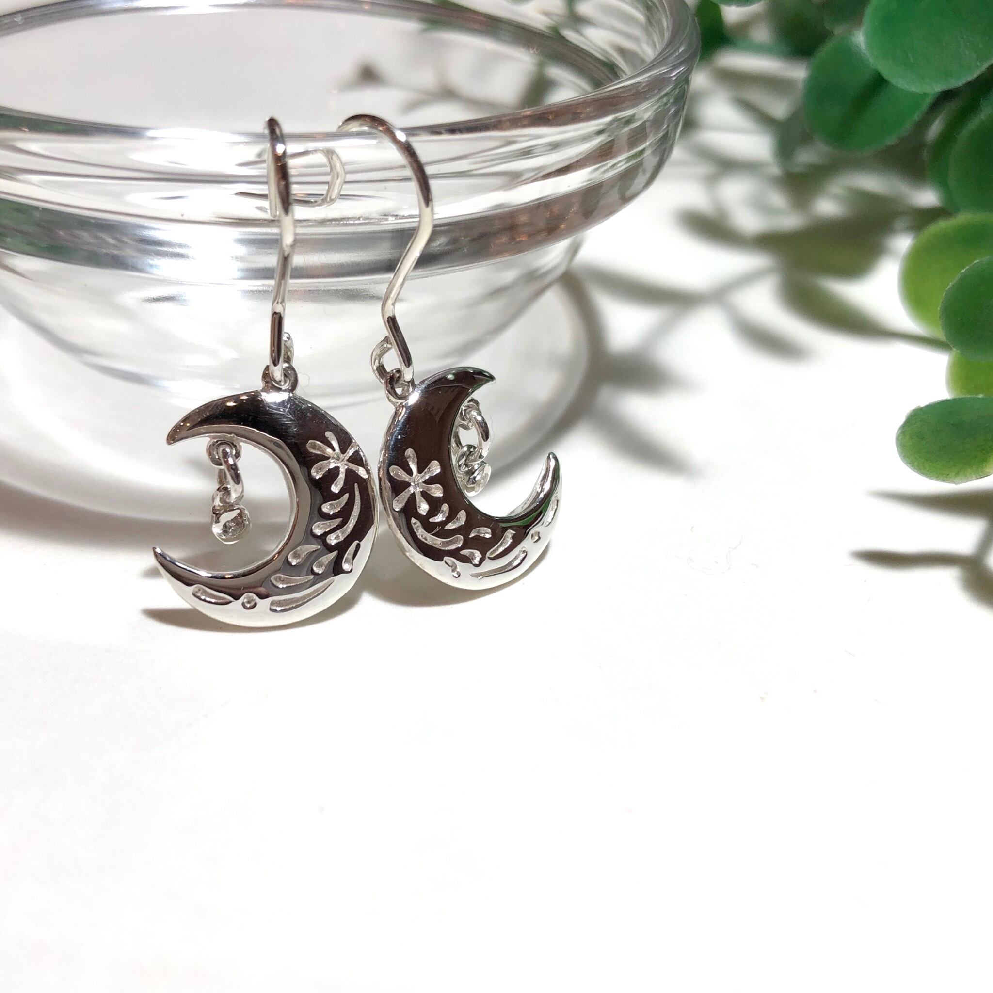 再入荷!純銀製*花唐草模様のお月様ピアス