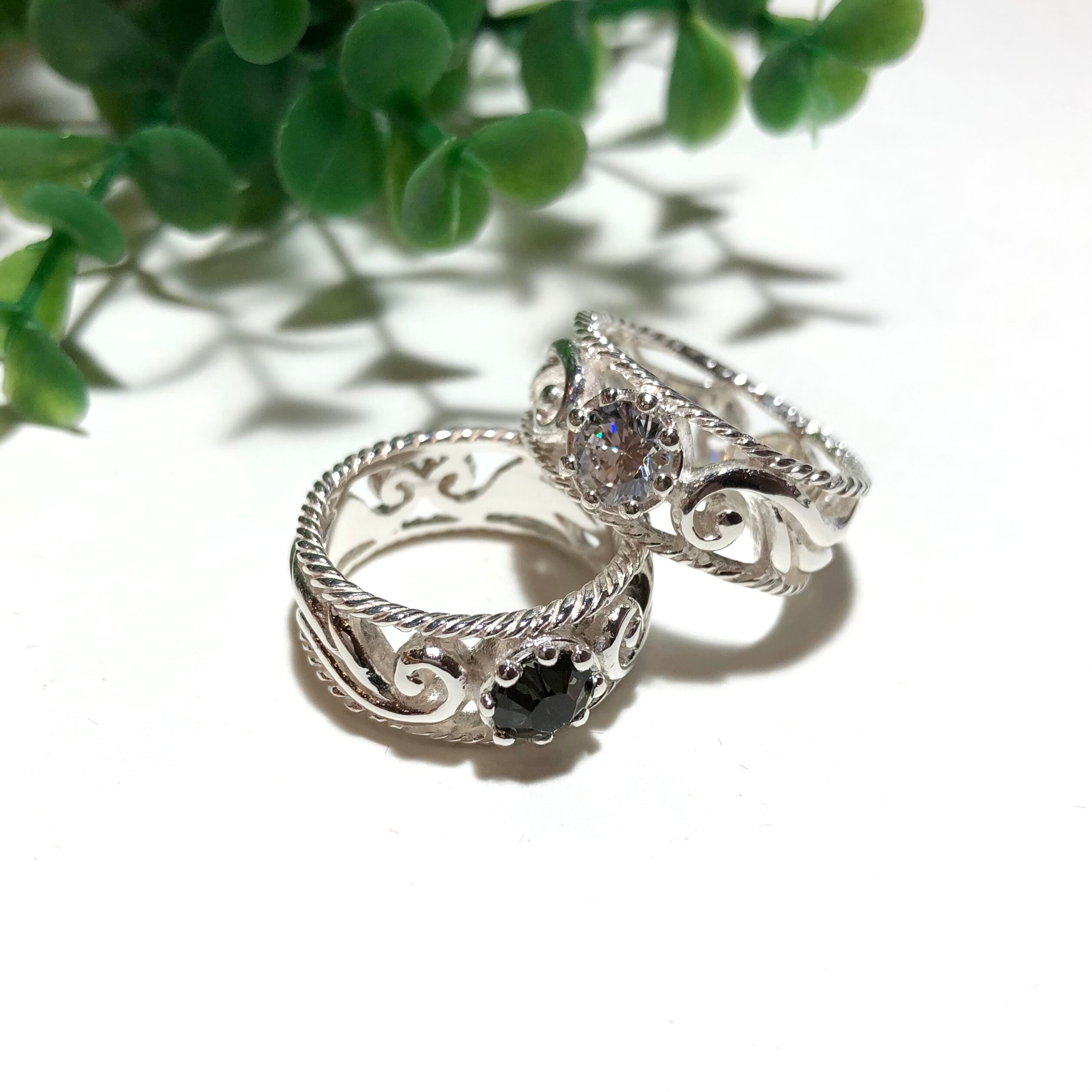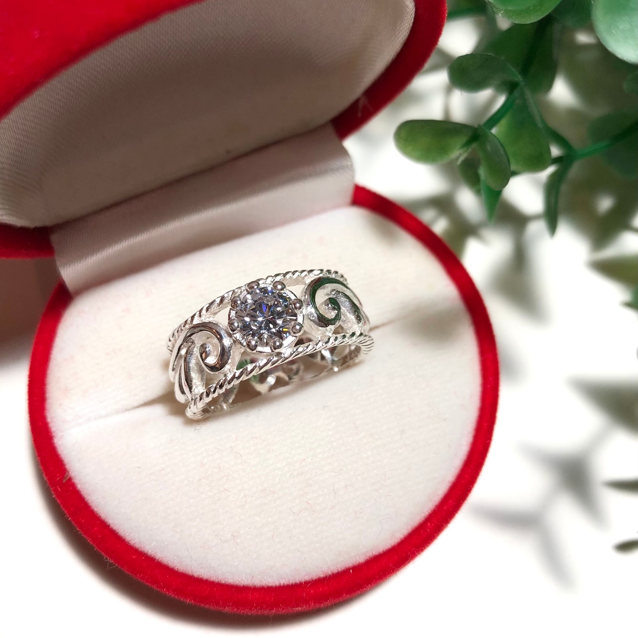サイズ入荷!純銀製*ジルコニア透かしデザインリング