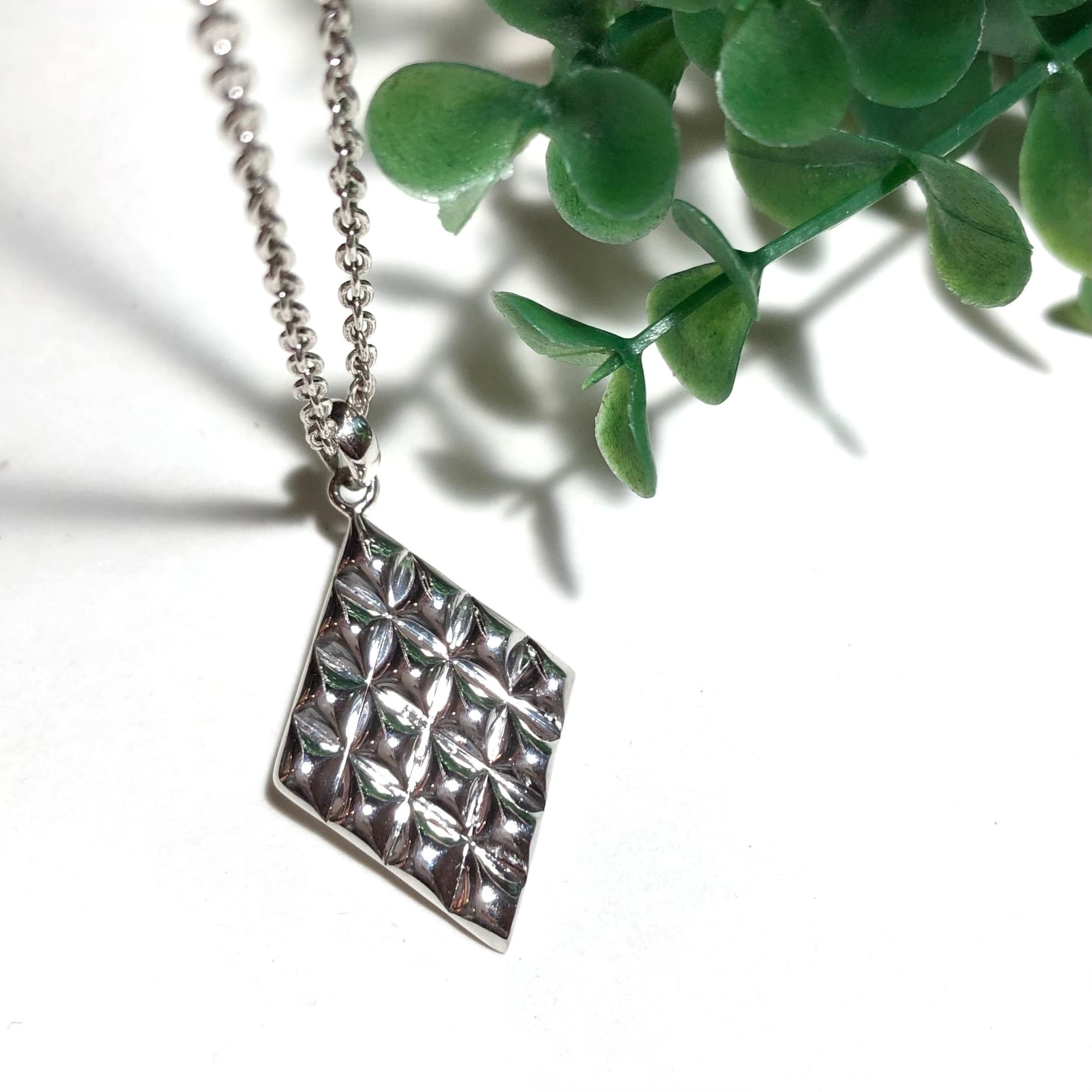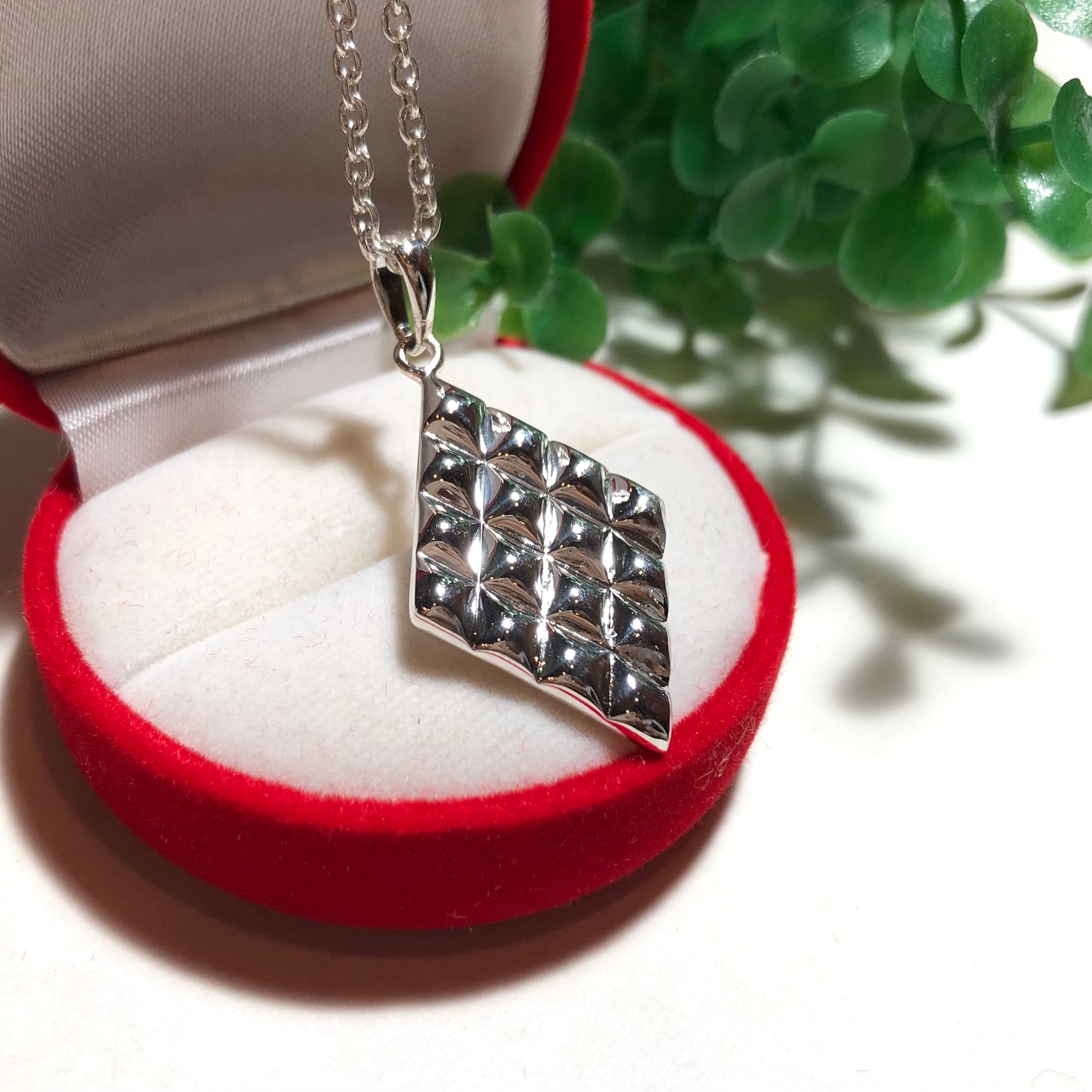 *ダイヤ型の中にさらに小さなダイヤ型が一つずつ立体的に施されたペンダント