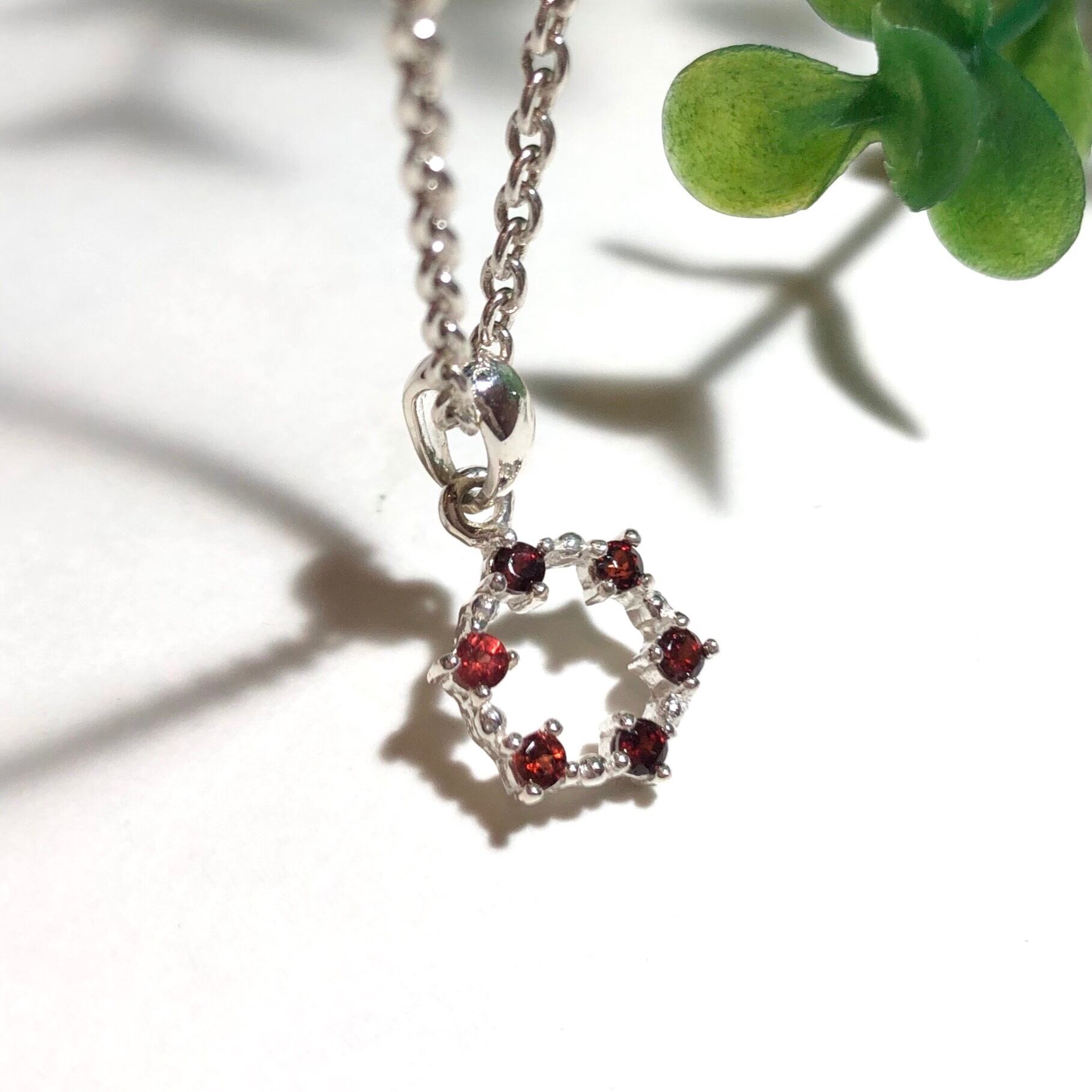 再入荷!純銀製*石付きサークルペンダント アイオライト ガーネット