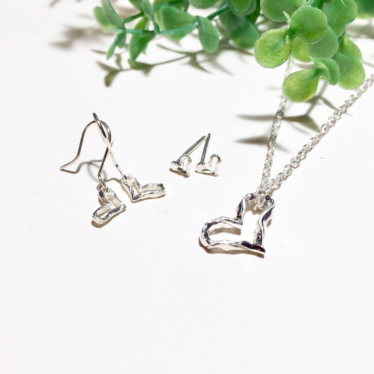 *アクセサリーモチーフとして人気のハート。波打つようなデザインの小さなピアス