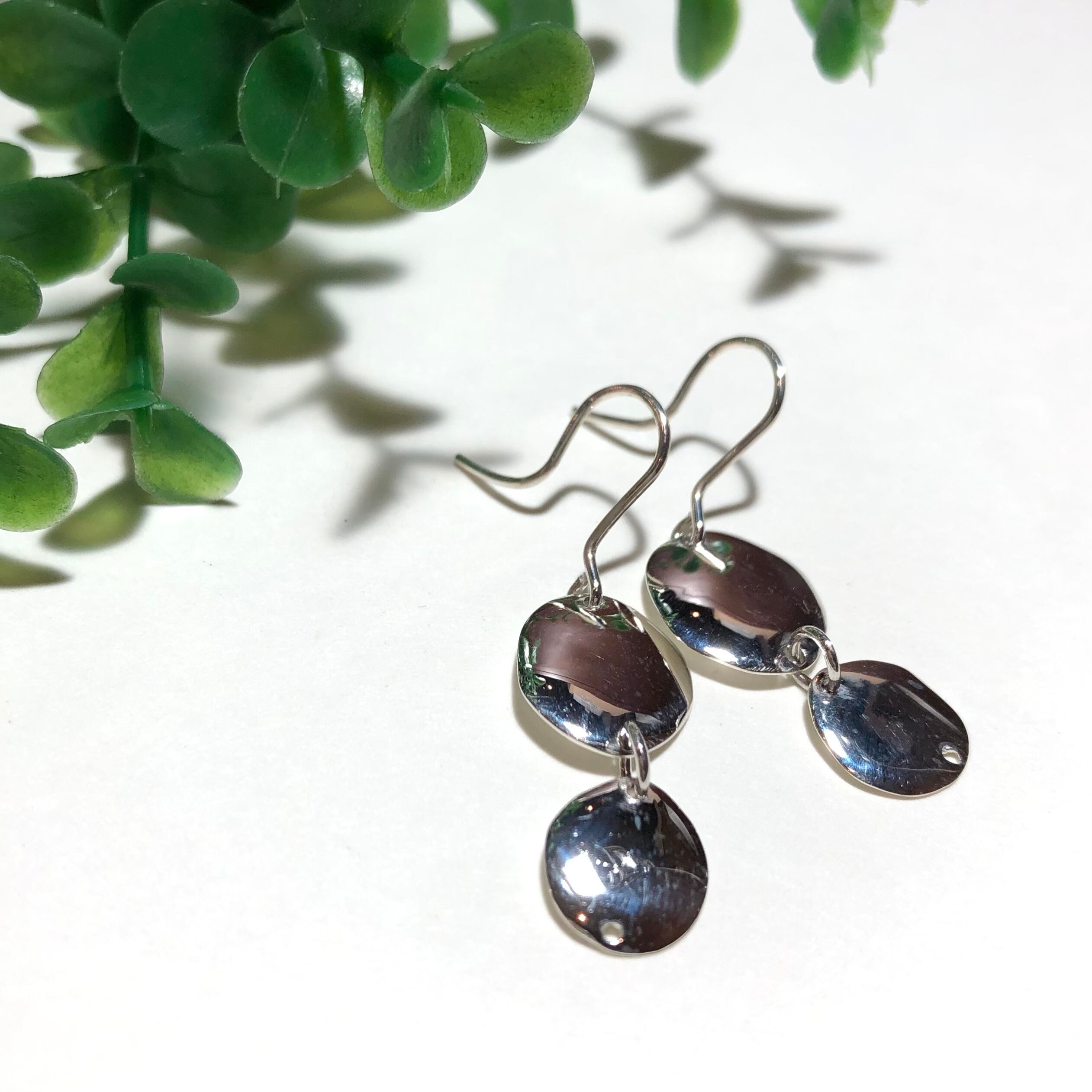 *少し歪な形の何かの破片のような、純銀の光が楽しめるプレートが大小連なるピアス
