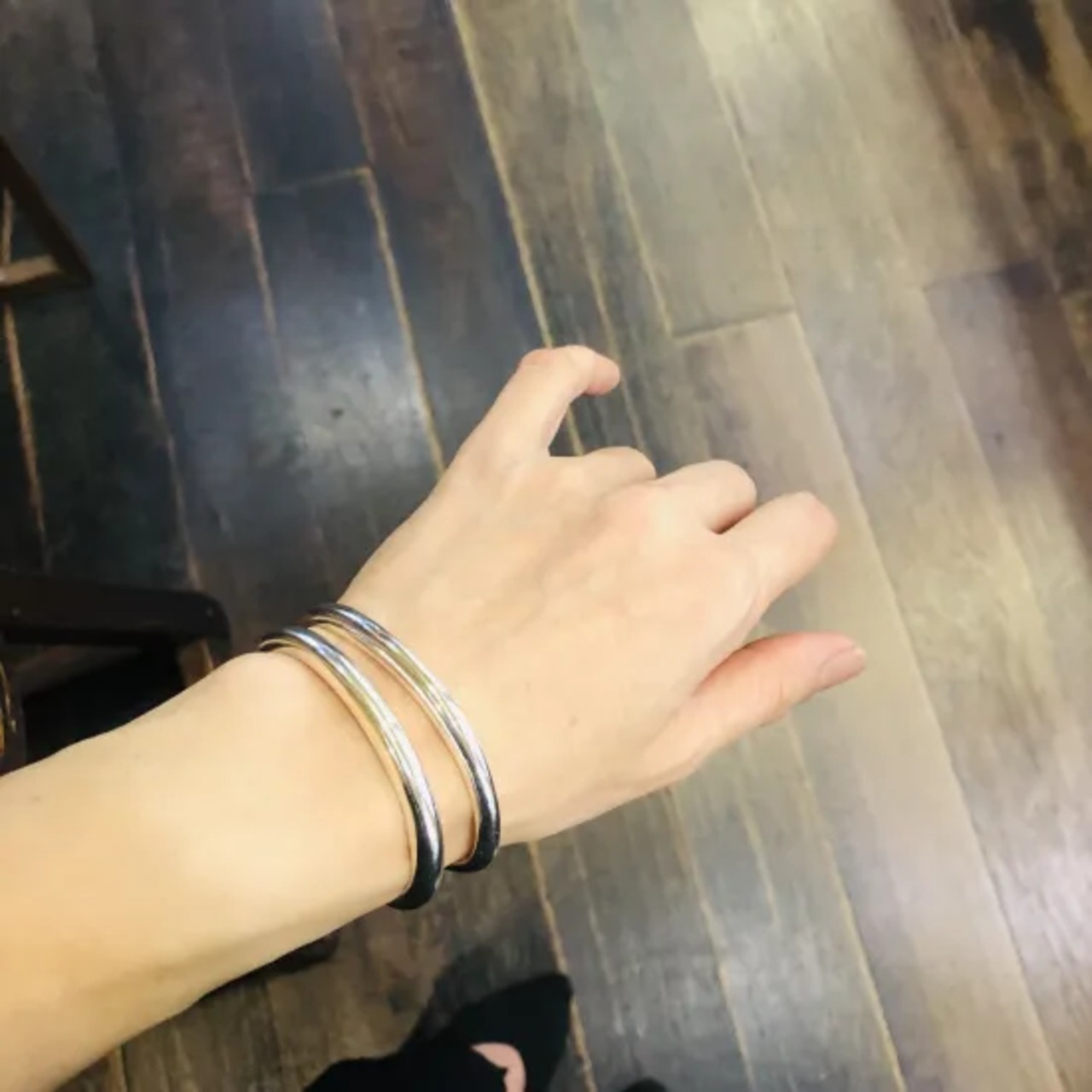 スタッフ手首周り約15cm、こちらのバングルは普段Mで使用しています。