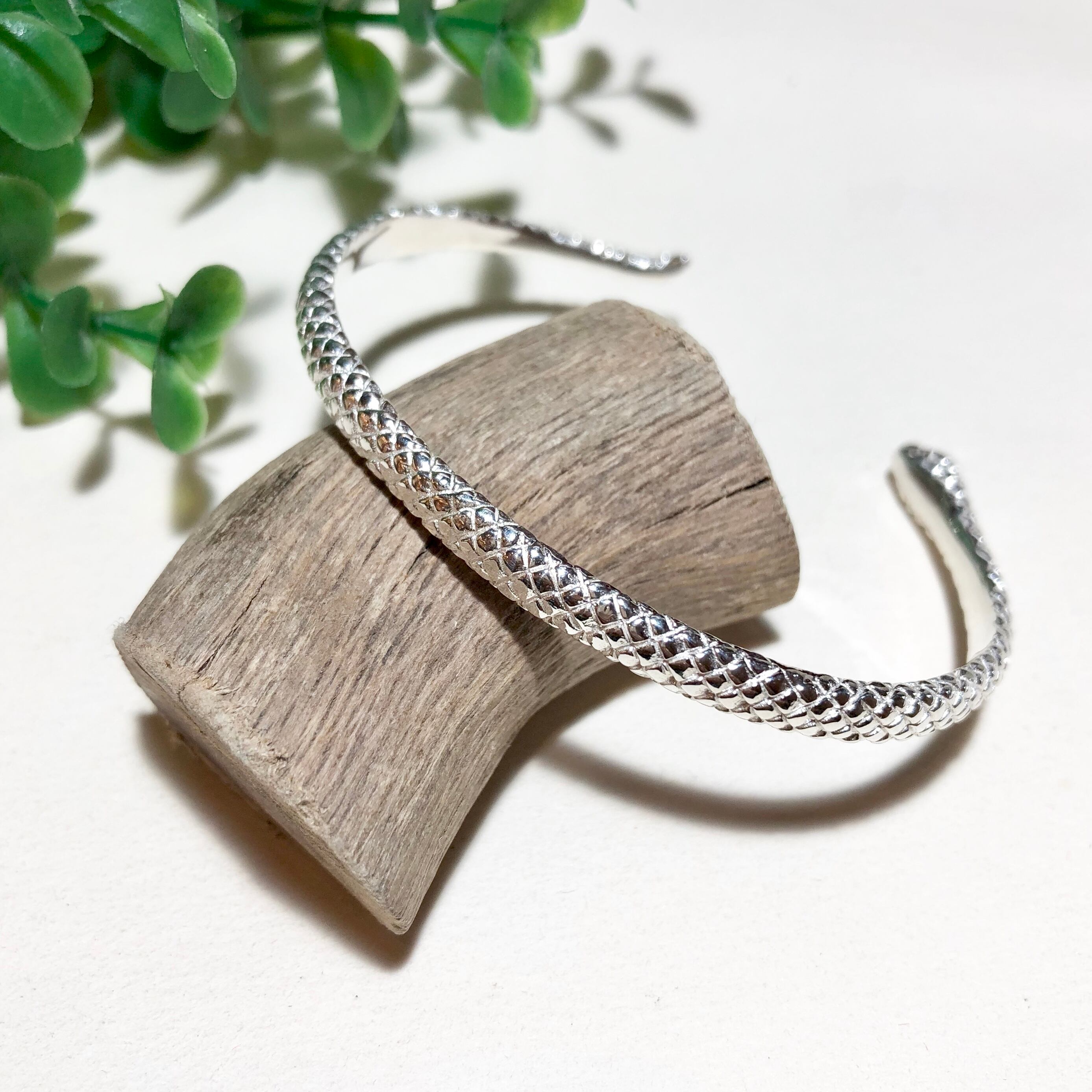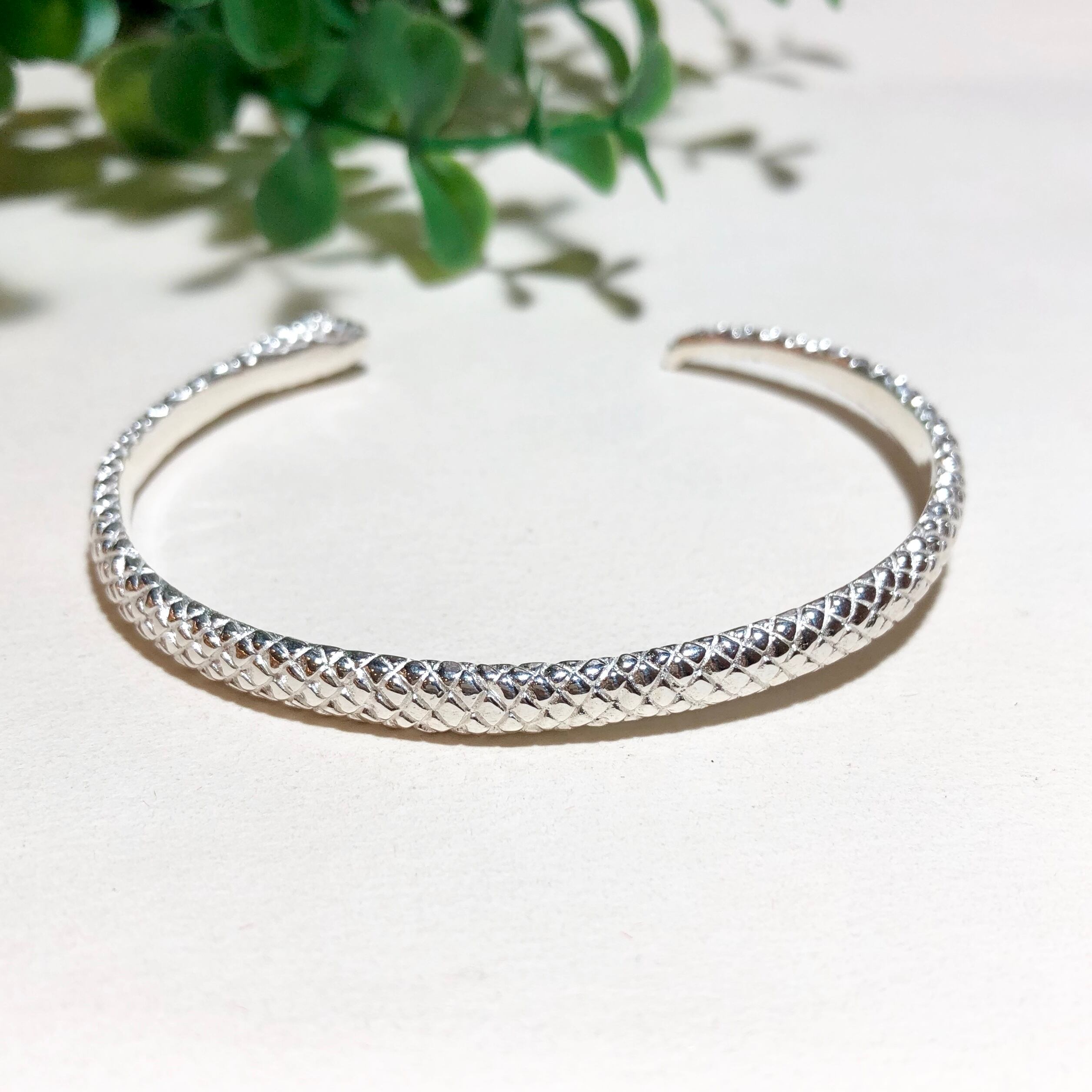*バングルは無理に開閉したりせず、スリットをご自身の手首に合わせてご使用ください。また、着脱の際はバングルの片側だけをつまむのではなく、親指と人差し指でバングル全体を覆うようにすると歪みや破損防止になります。