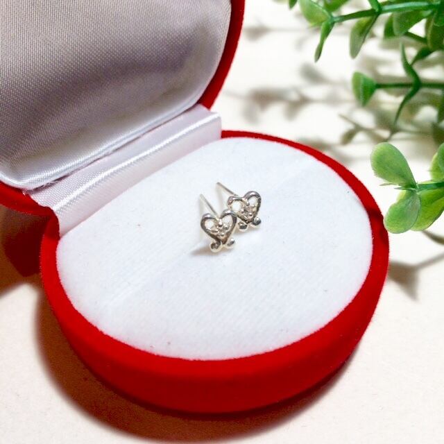 再入荷!純銀製*ジルコニア付きハートミニピアス