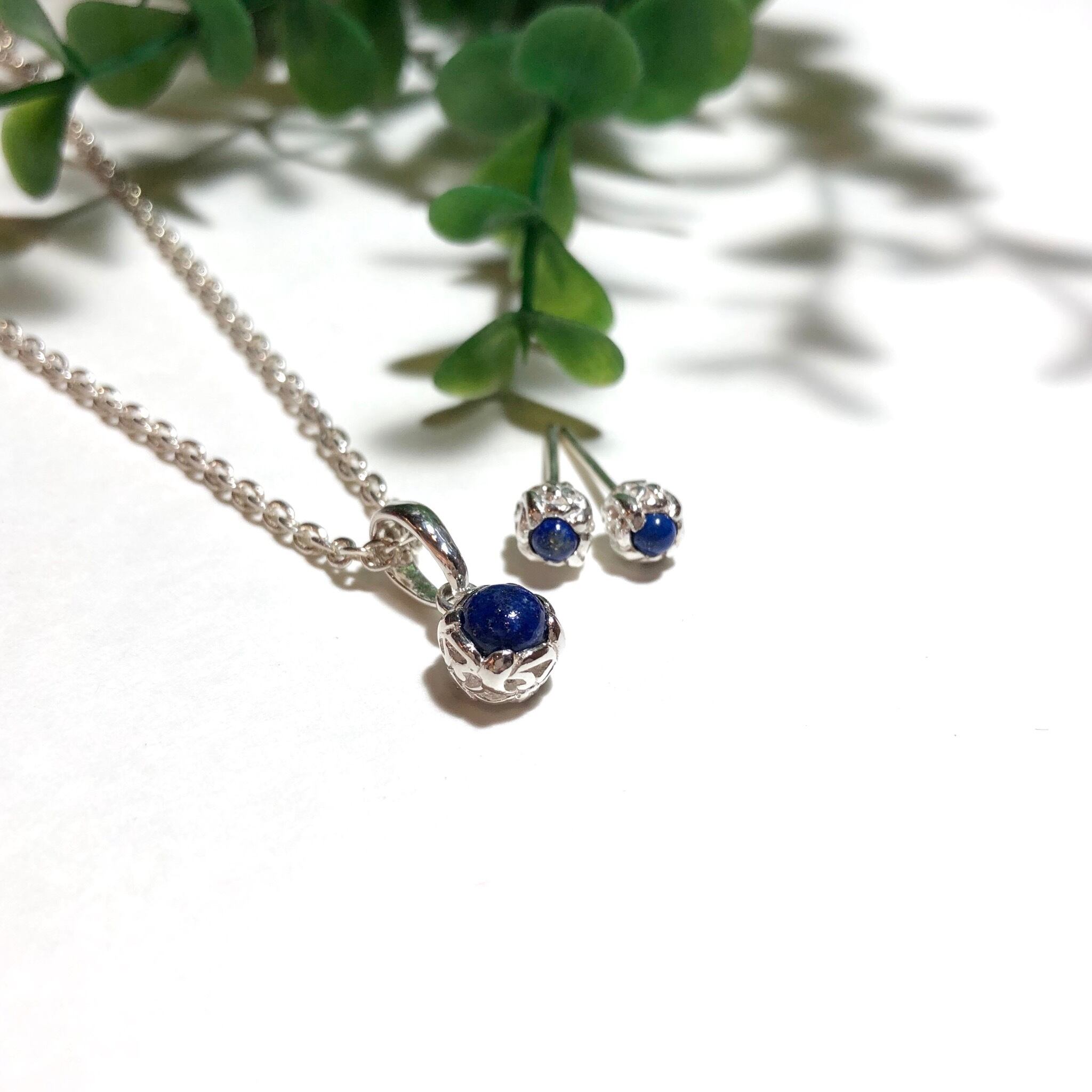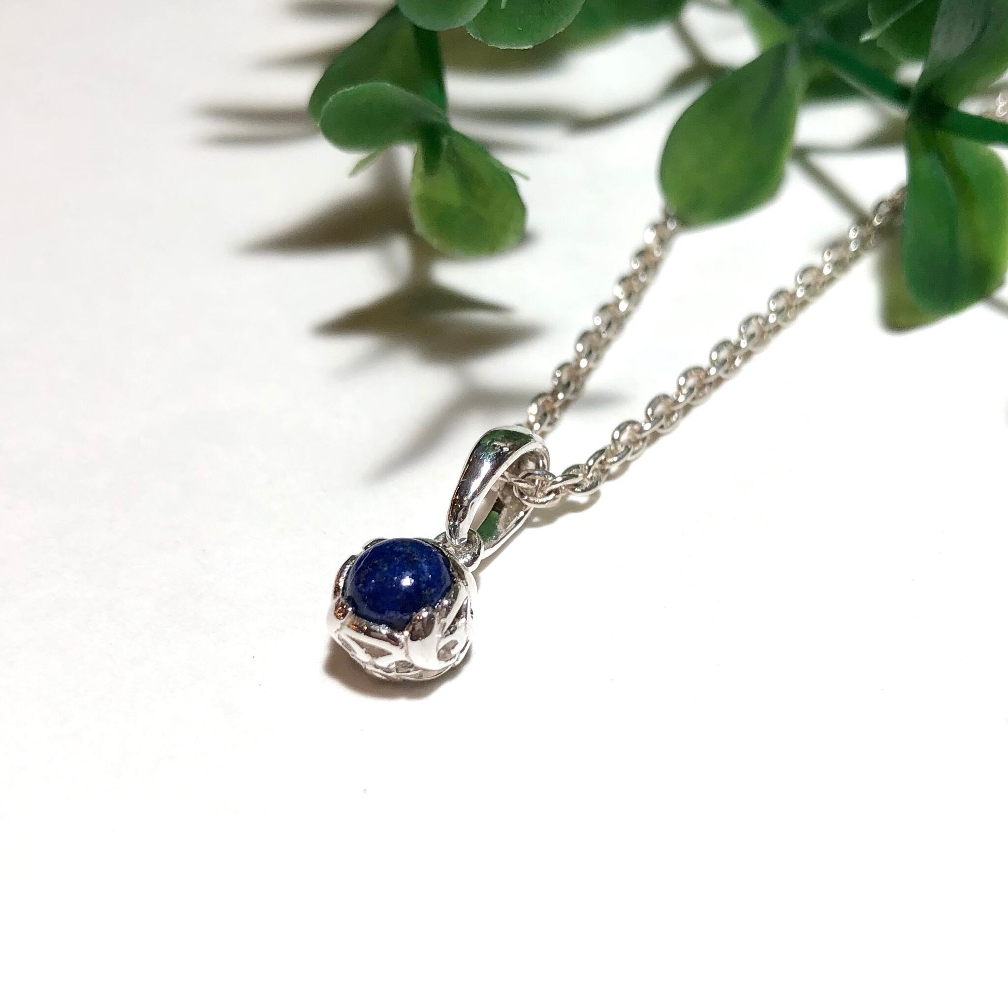 再入荷!純銀製*ラピスラズリ 唐草枠ミニペンダント