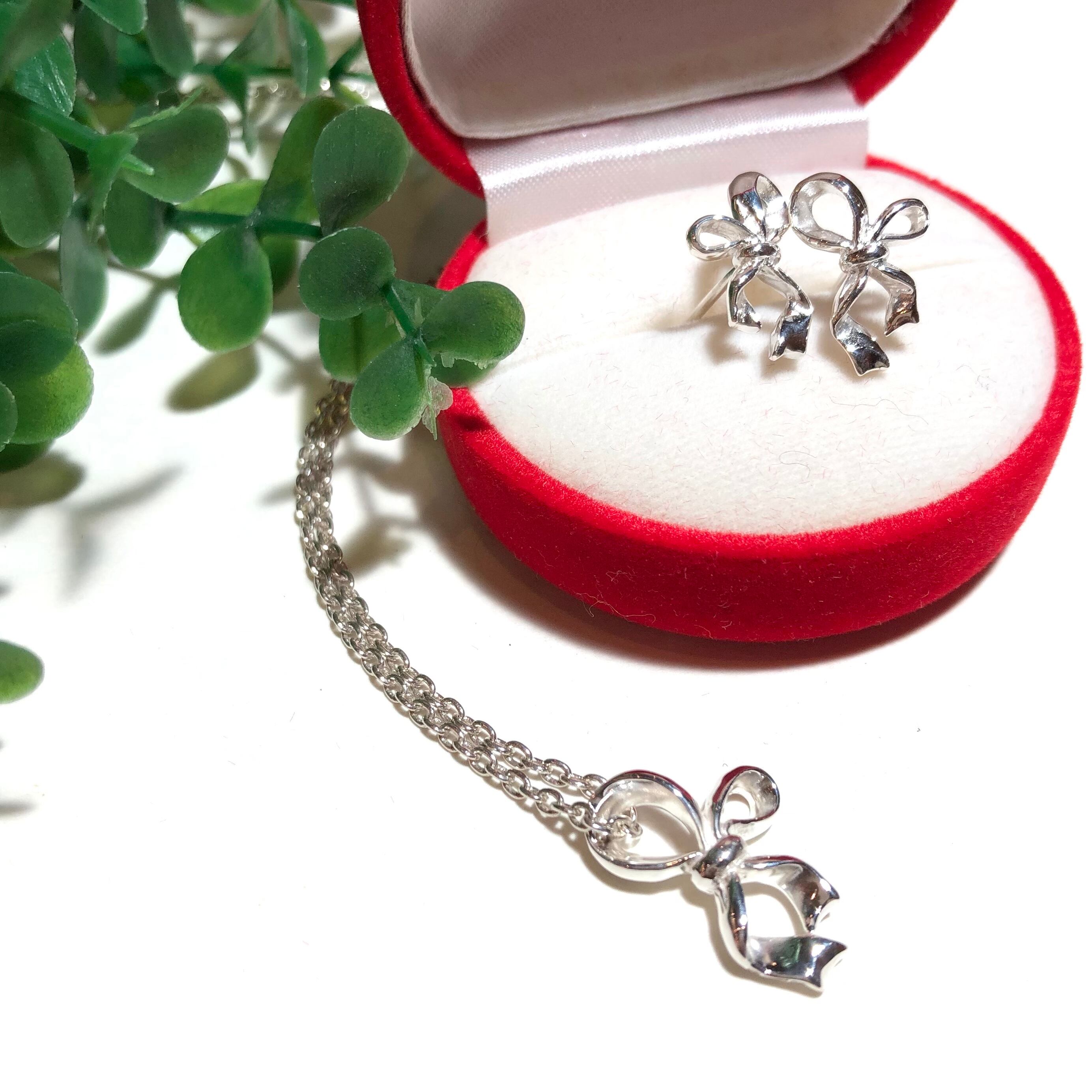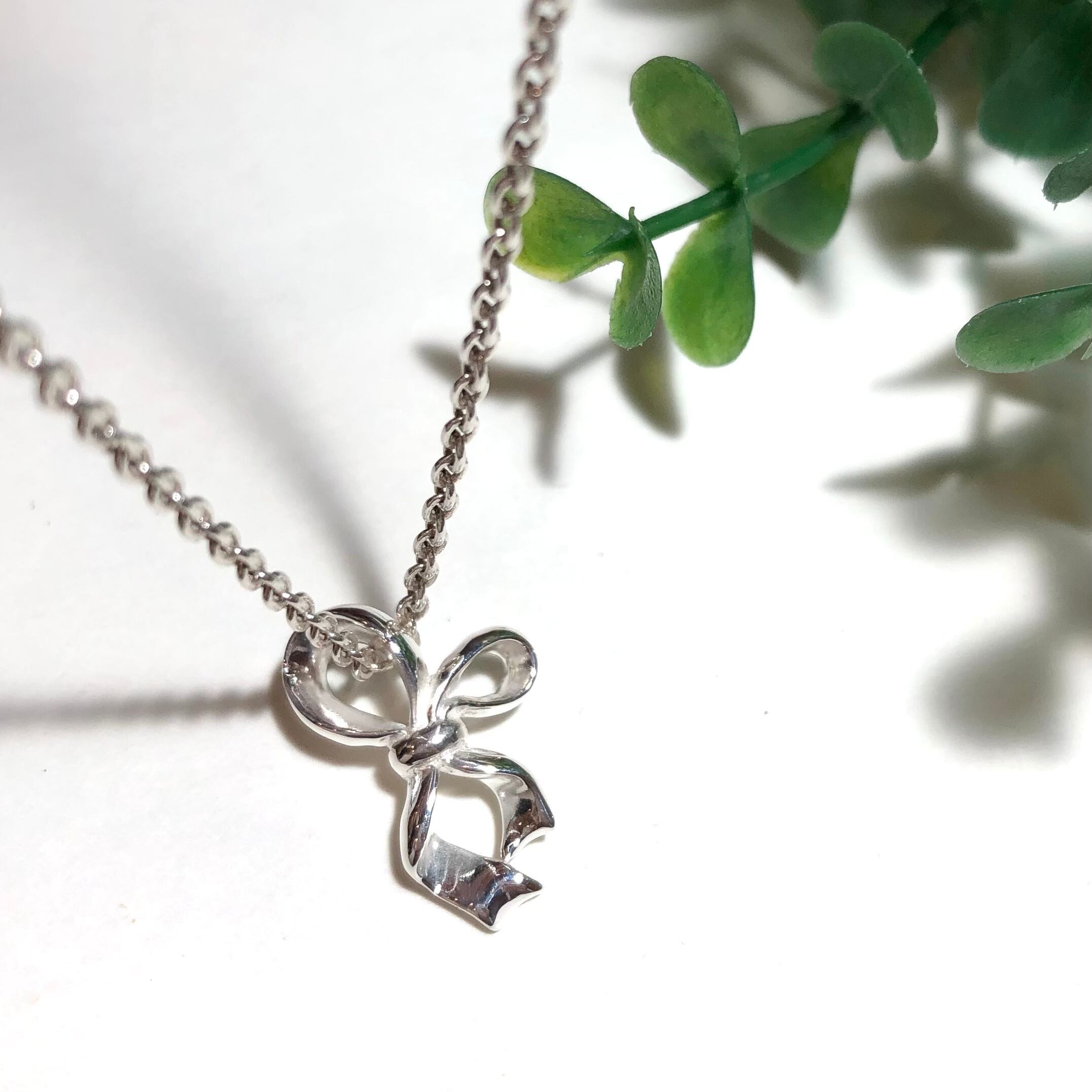 *立体感と動きのあるデザインのリボンモチーフのペンダント