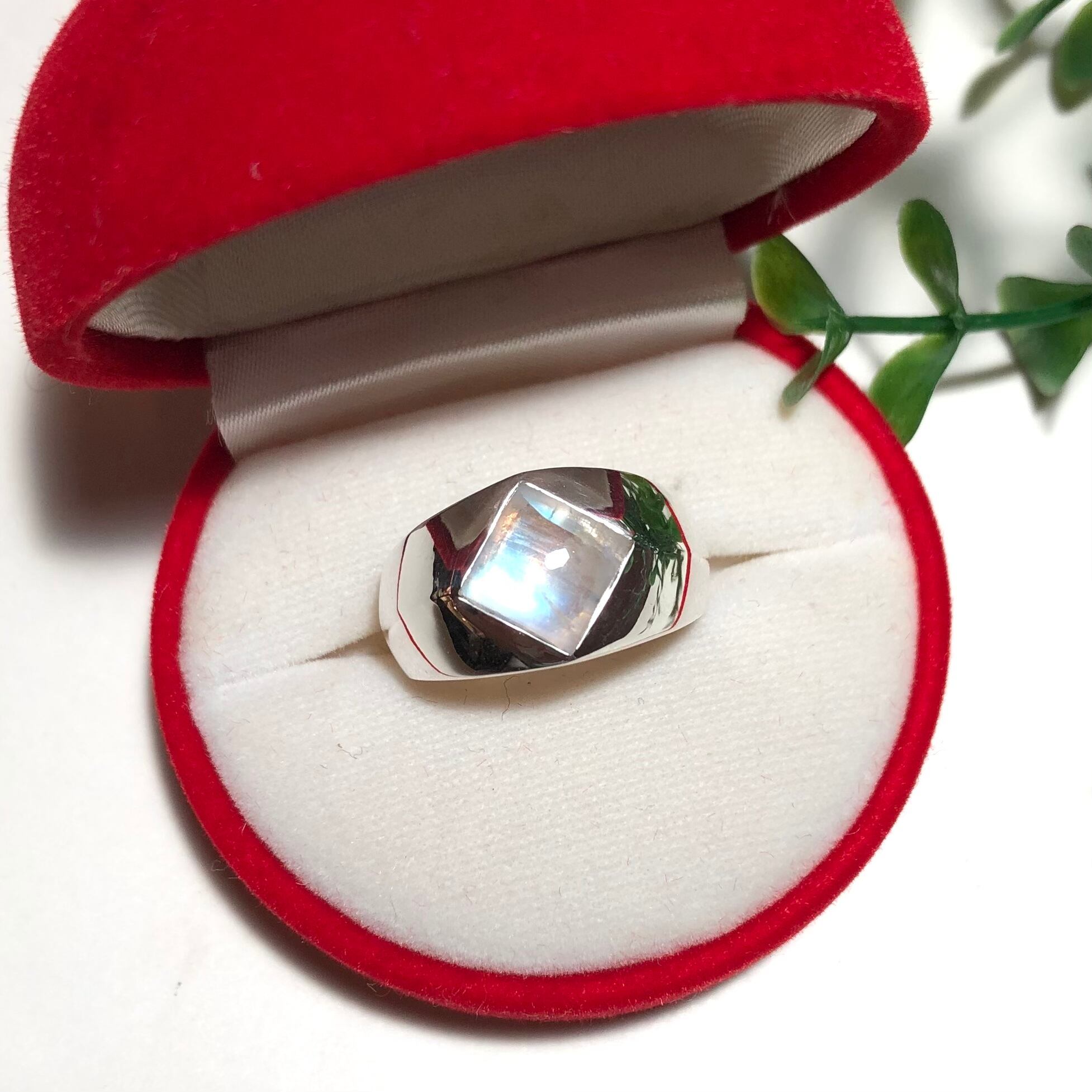 サイズ入荷!純銀製*ブルームーンストーンスクエアリング エッジタイプ