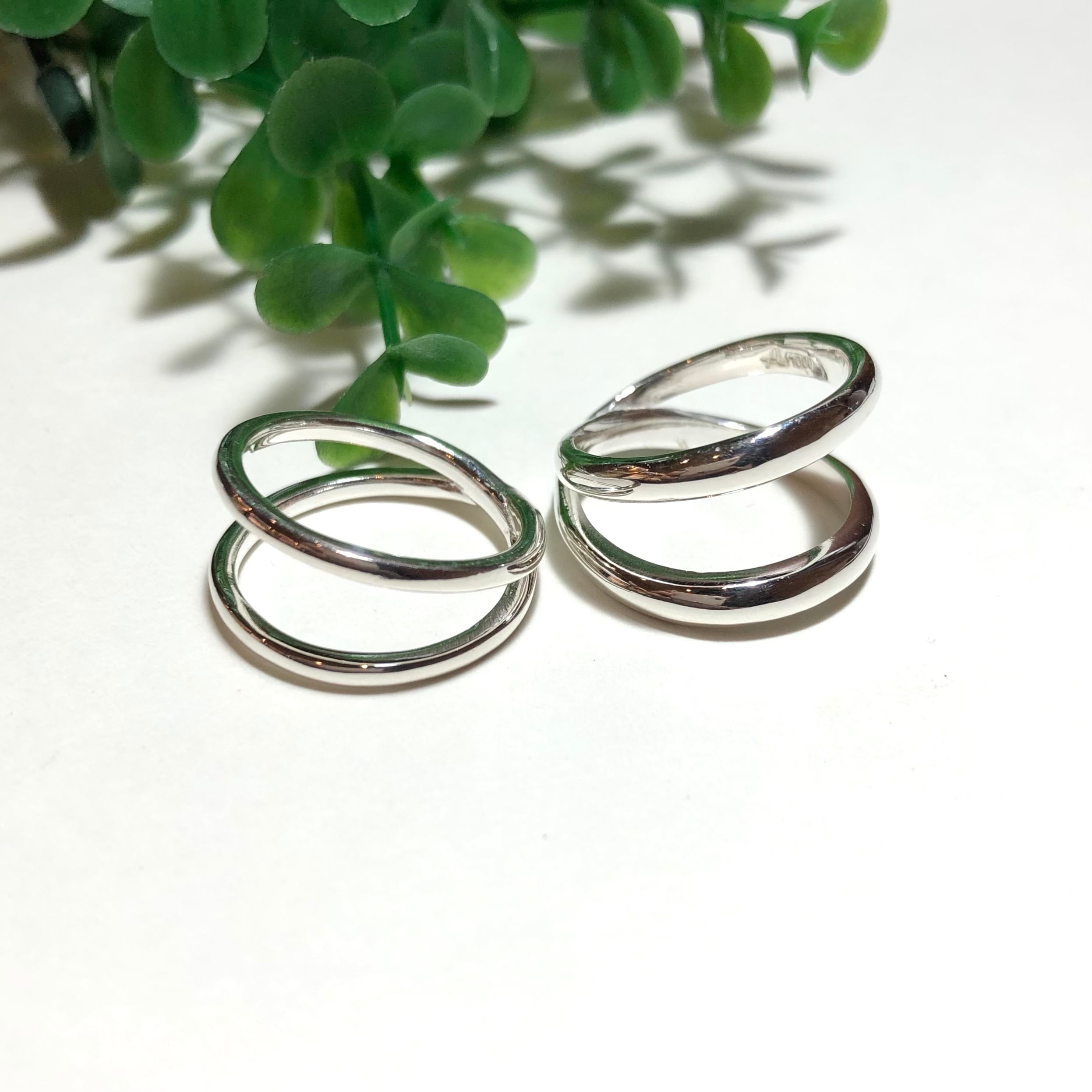 サイズ入荷!純銀製*シンプル2連リング スリムタイプ