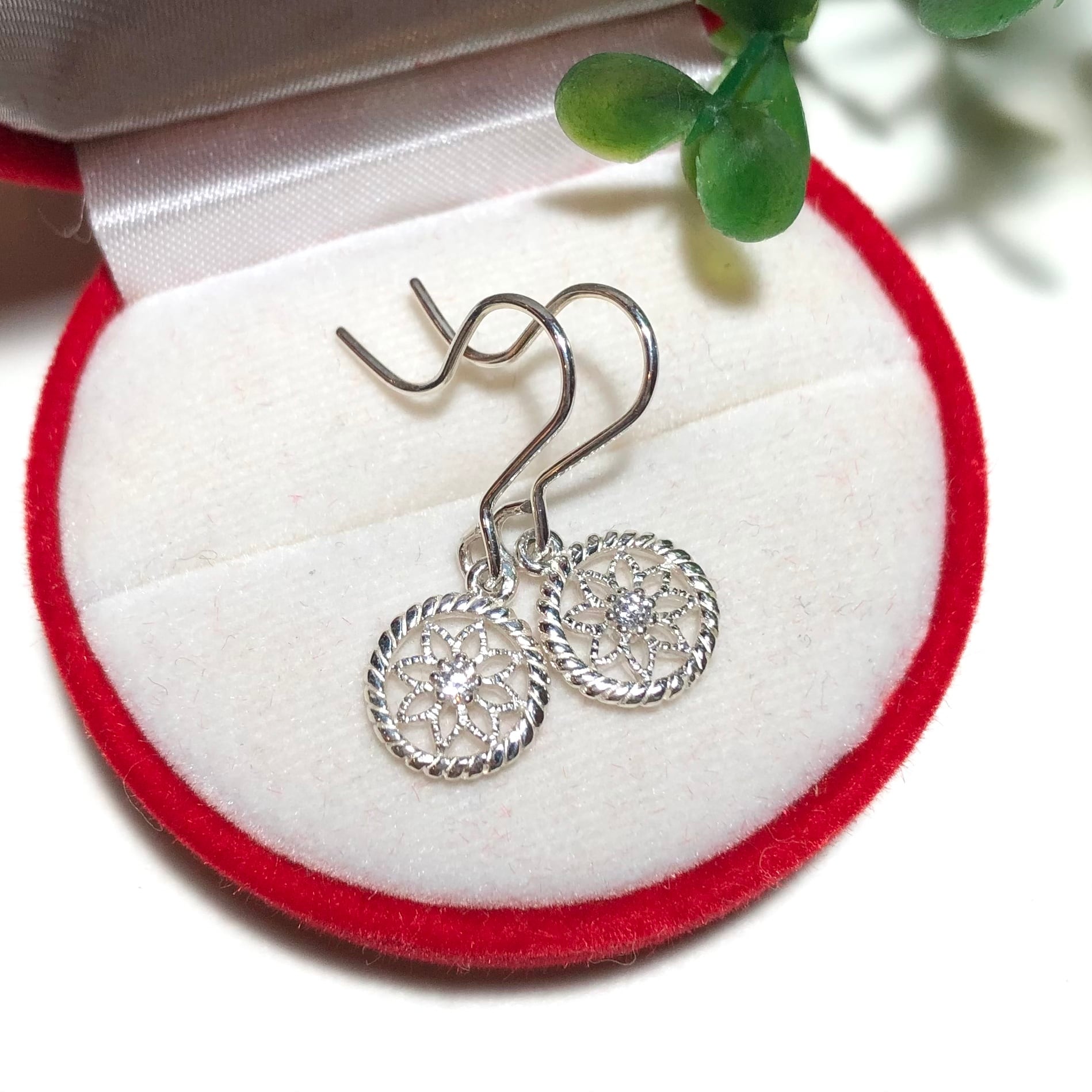 再入荷!純銀製*透かし模様ジルコニア付きピアス
