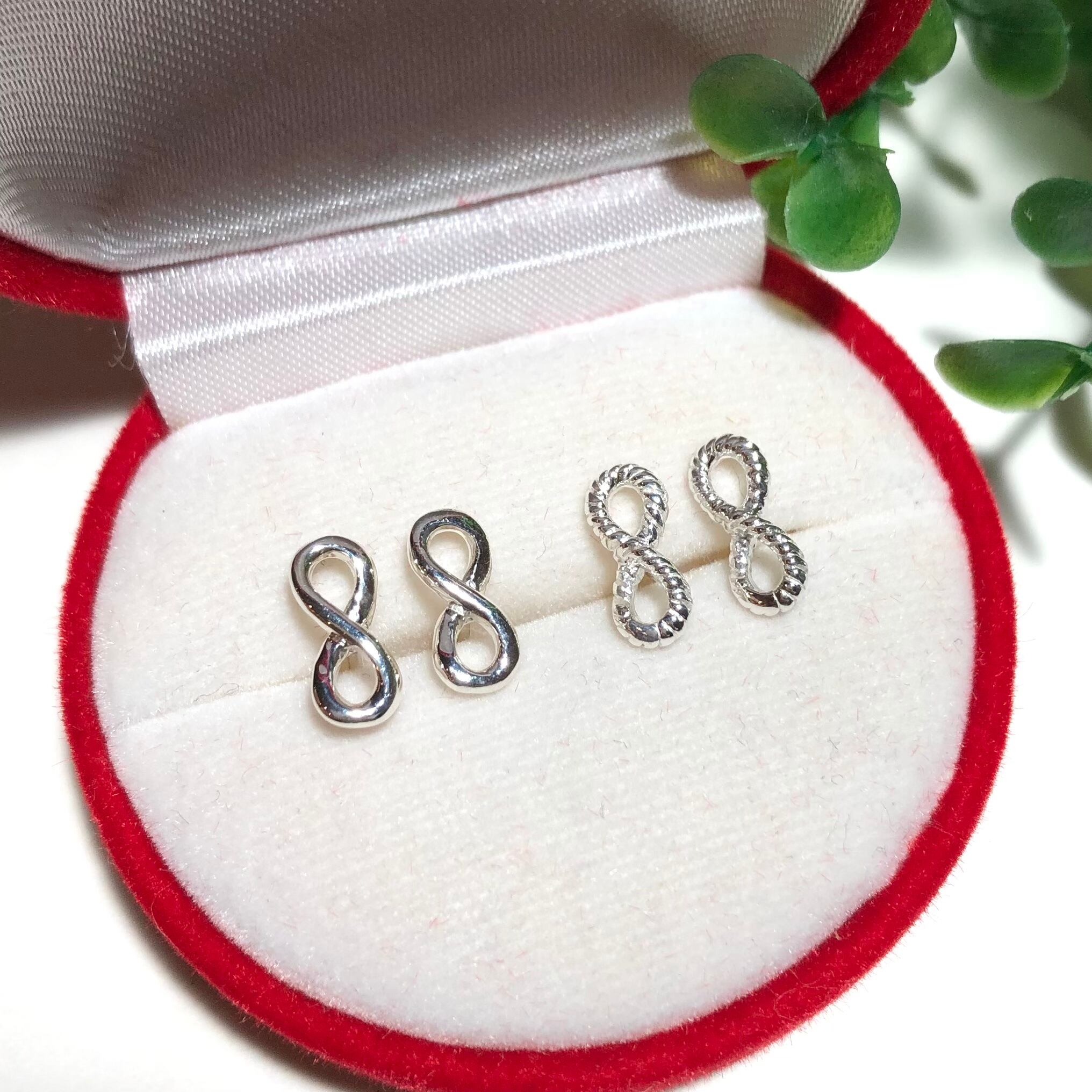 *「無限」「永遠」の意味のインフィニティマーク。縁起の良い八の字モチーフのシンプルピアス