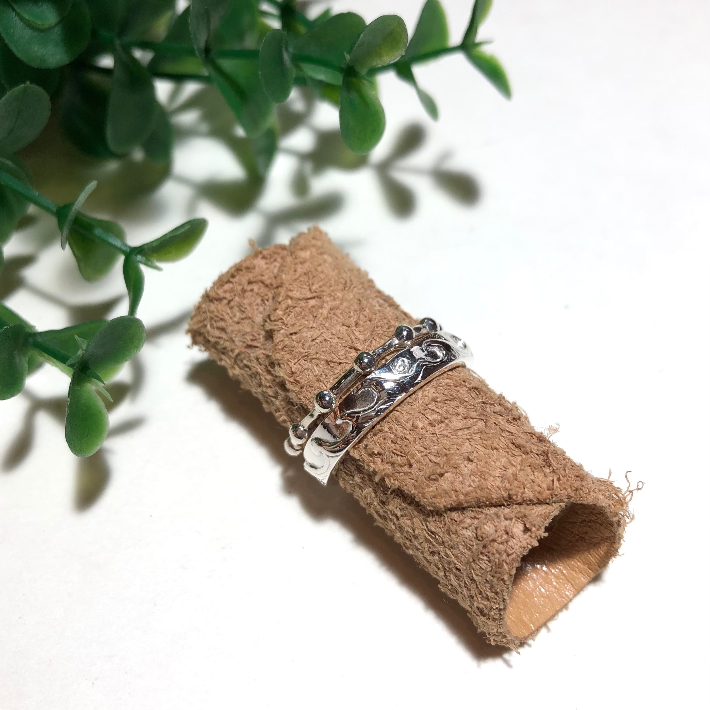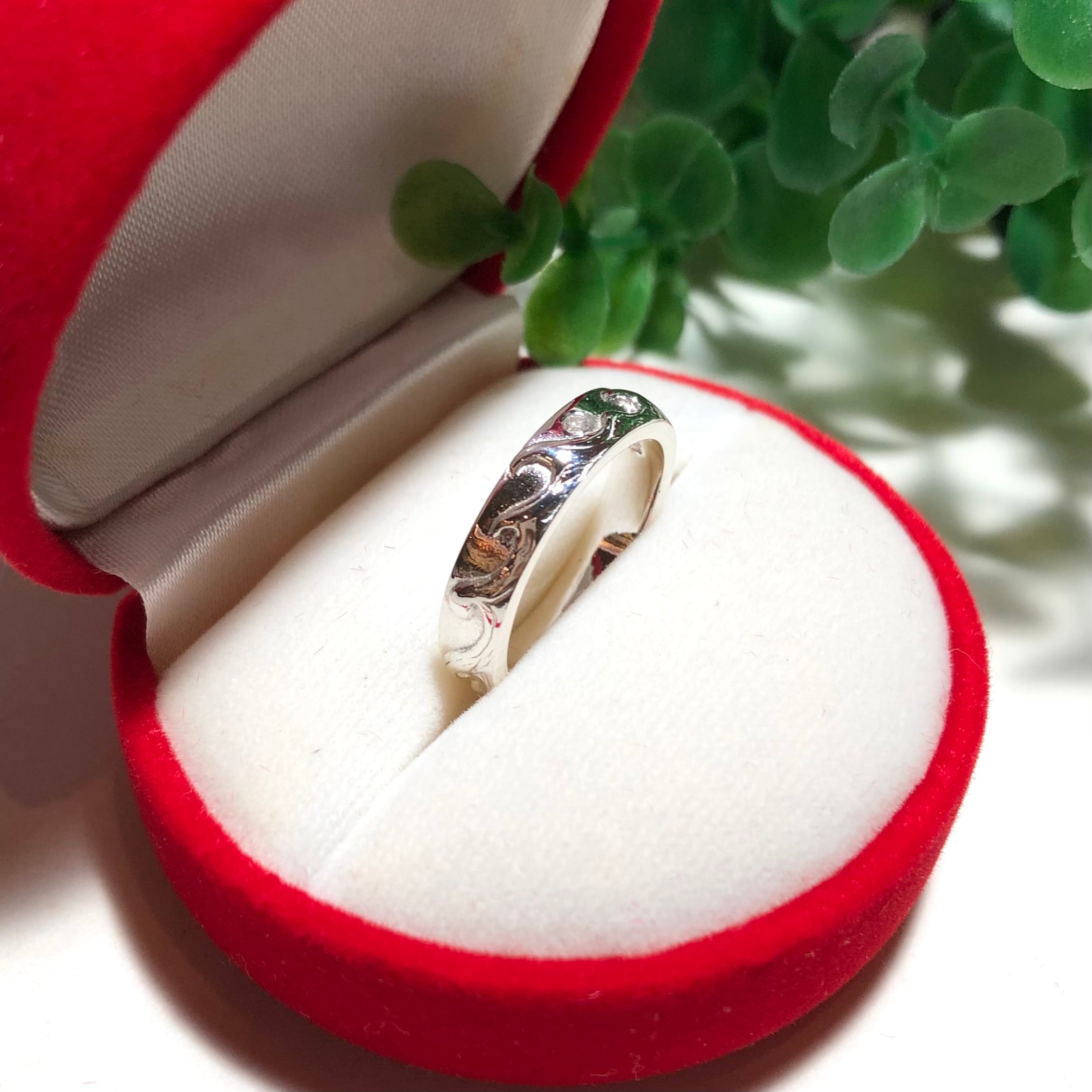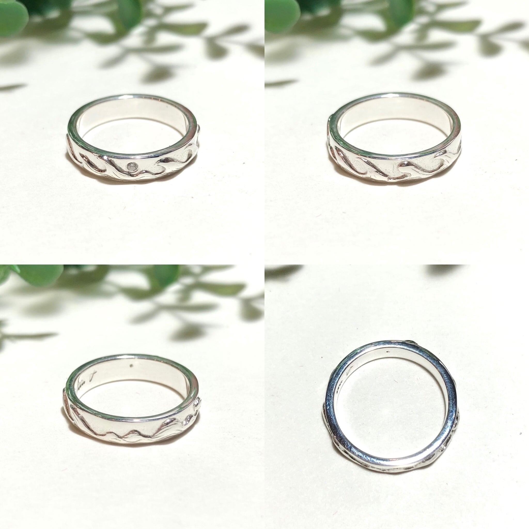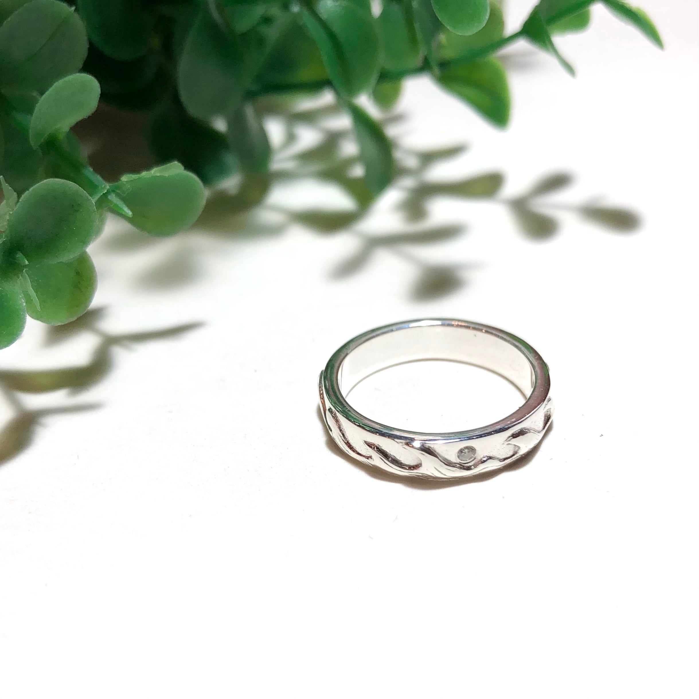 *波のような模様が浮き彫りされたリング。ジルコニアが一粒埋め込まれています。
