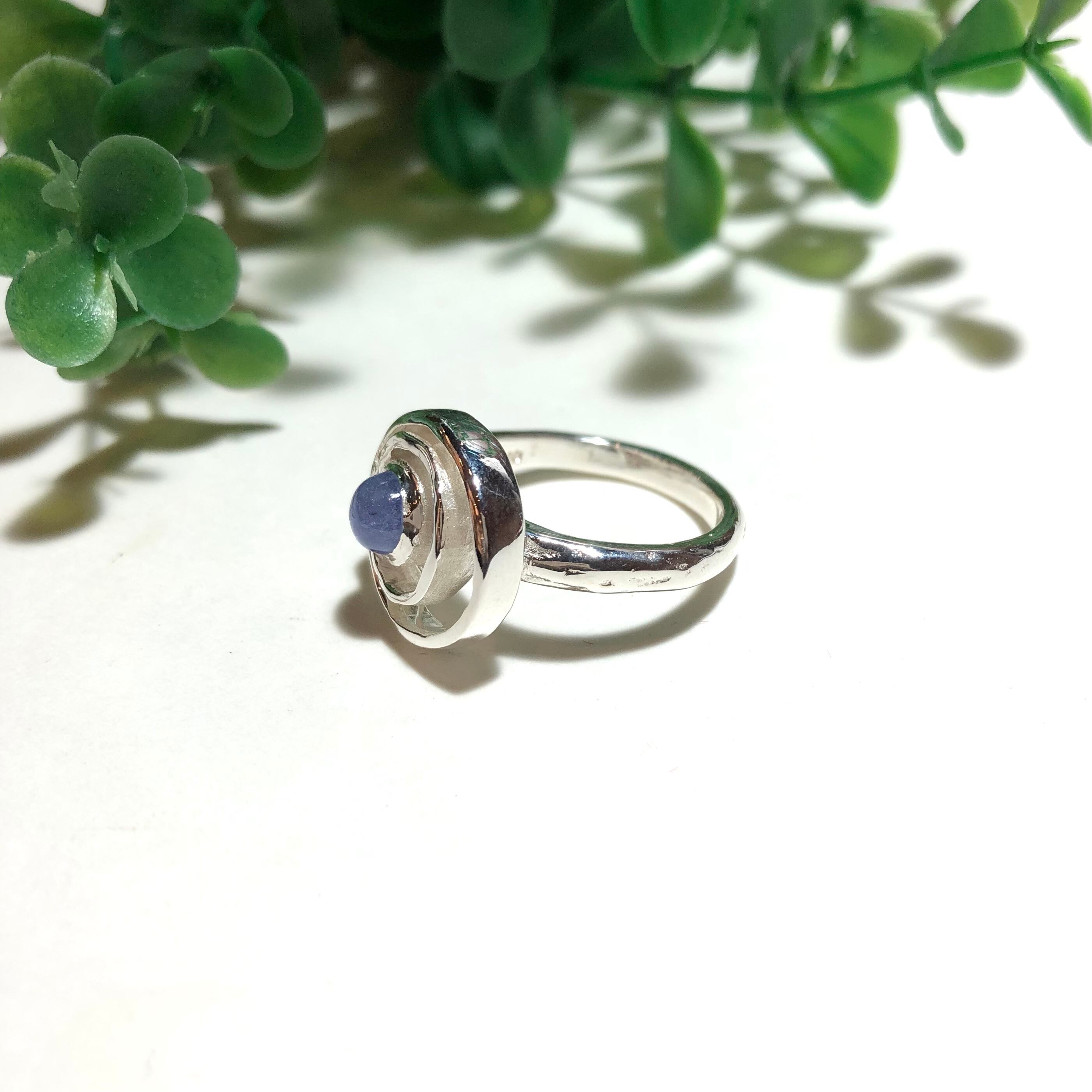 *宇宙や惑星を思わせるような色合いとデザインの、ちょっと不思議なタンザナイトとサークル型のデザインリング