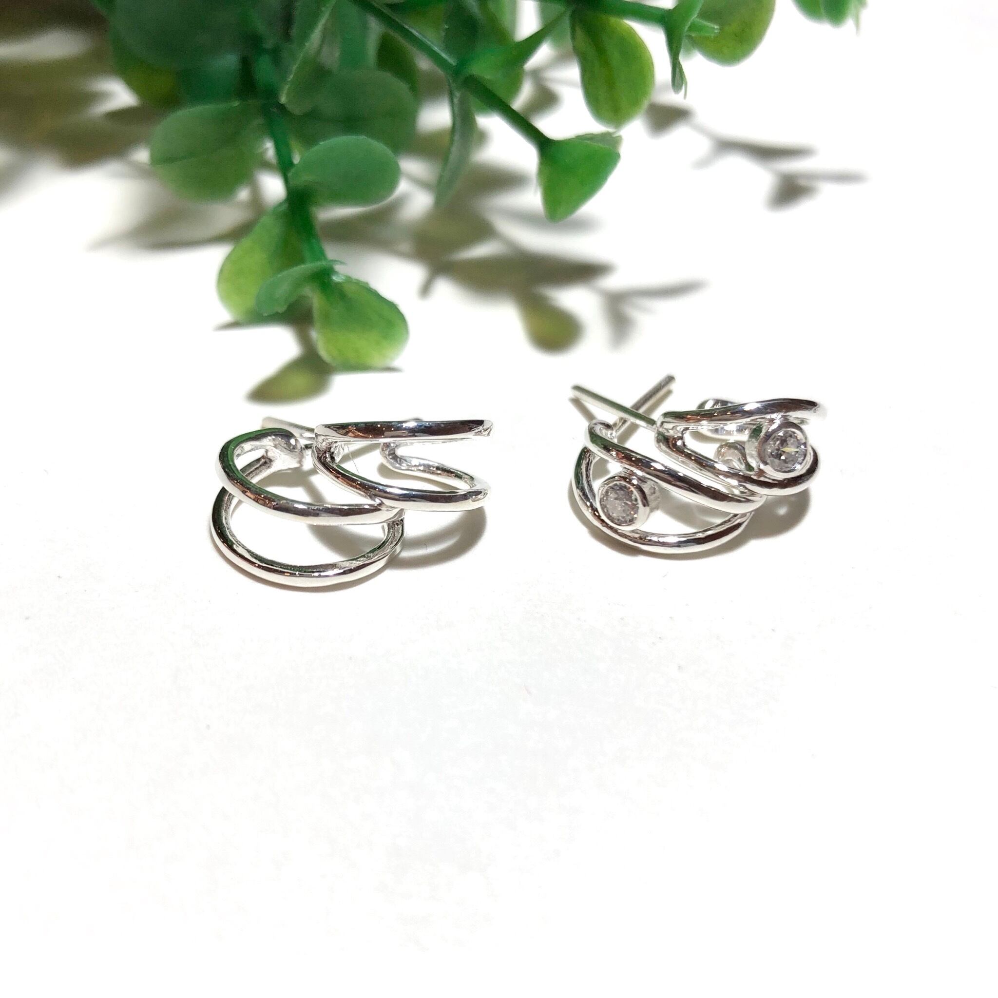 純銀製*ジルコニア付き透かしハーフフープピアス
