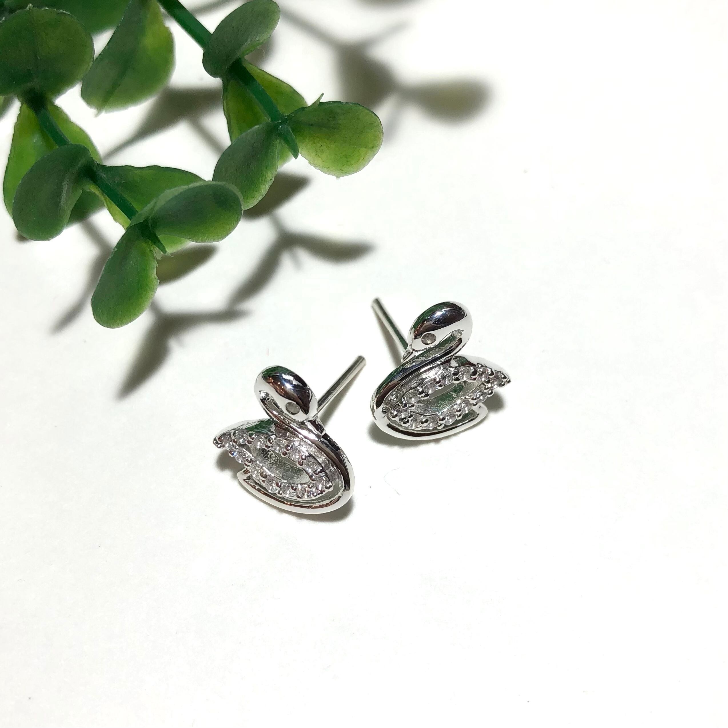*ジルコニアが埋め込まれた白鳥モチーフのピアス