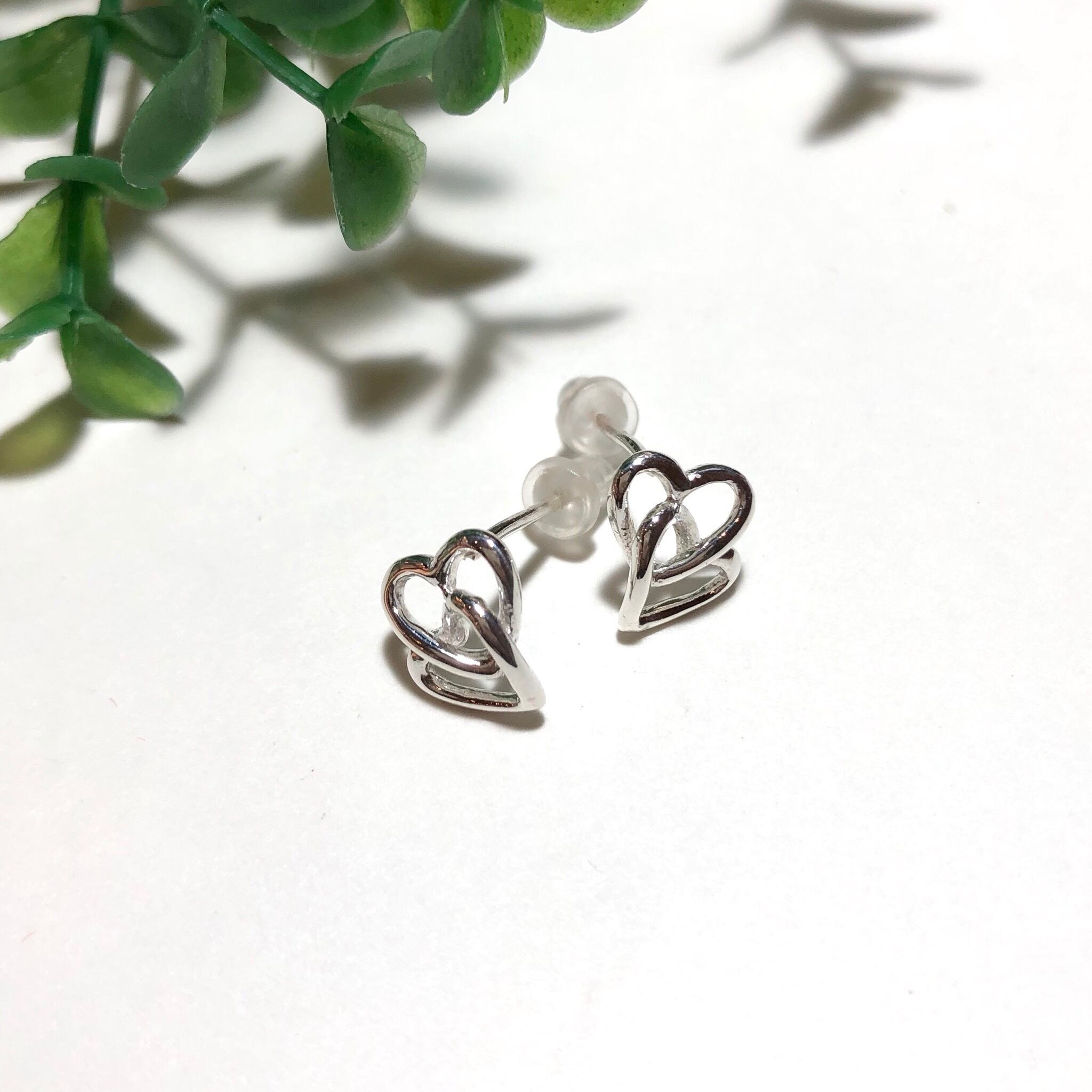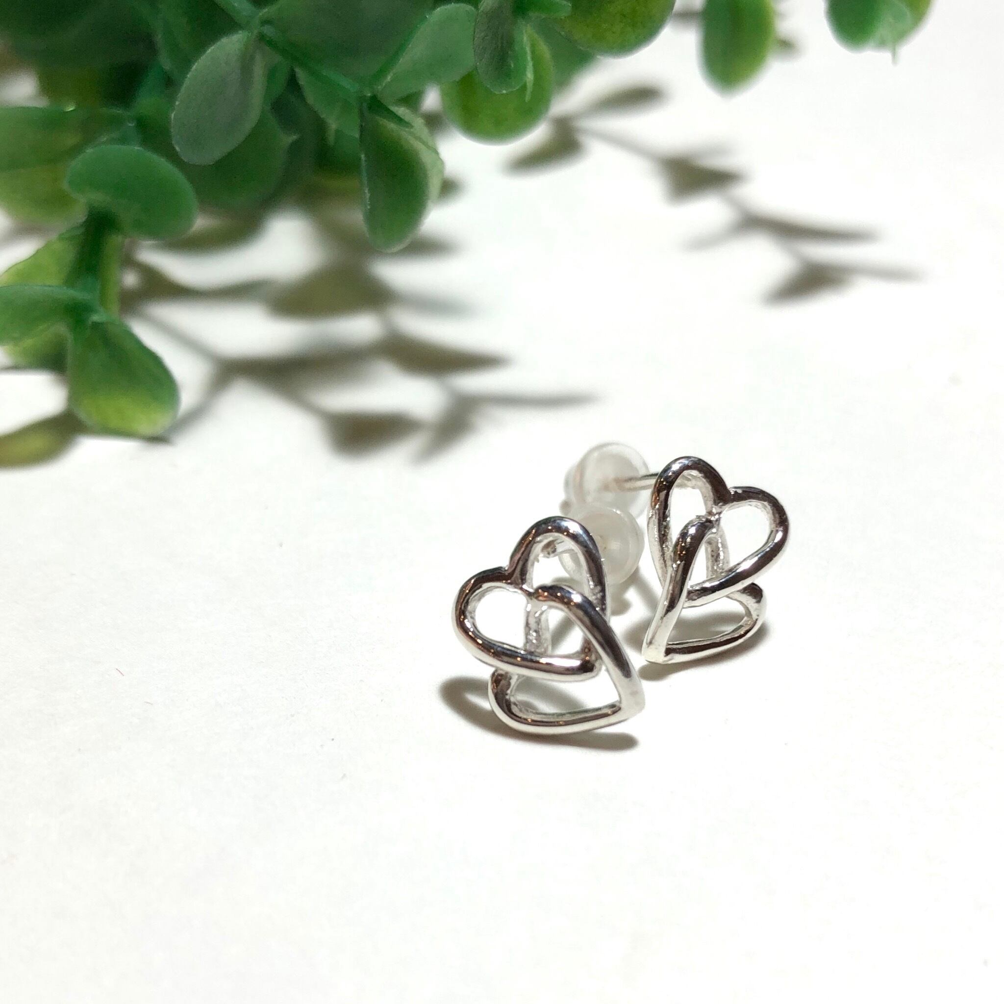 再入荷!純銀製*ダブルハート透かしピアス