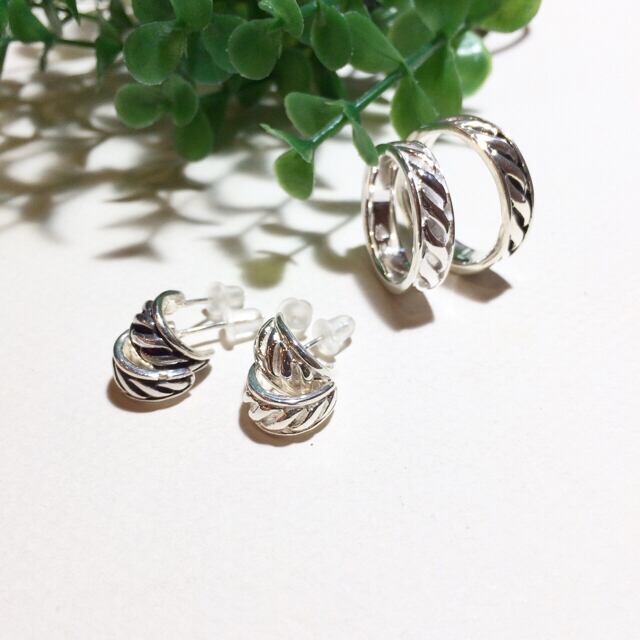 再入荷!純銀製*しま模様 ハーフフープピアス