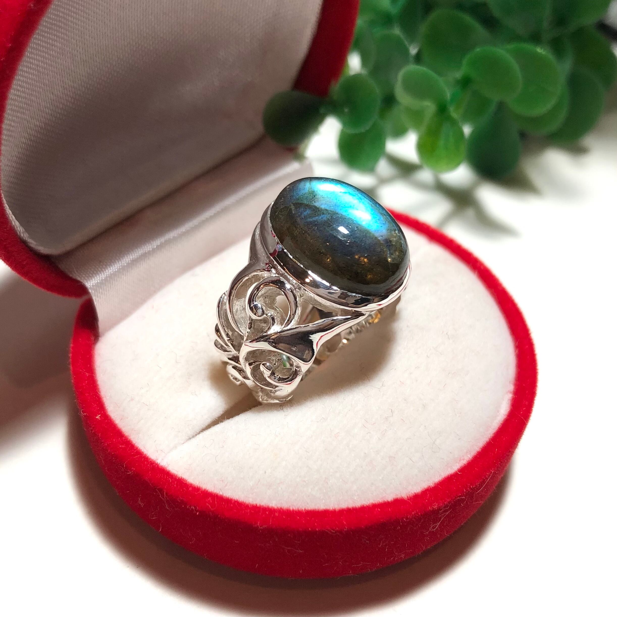 サイズ入荷!純銀製*ラブラドライト唐草リング ボリュームタイプ