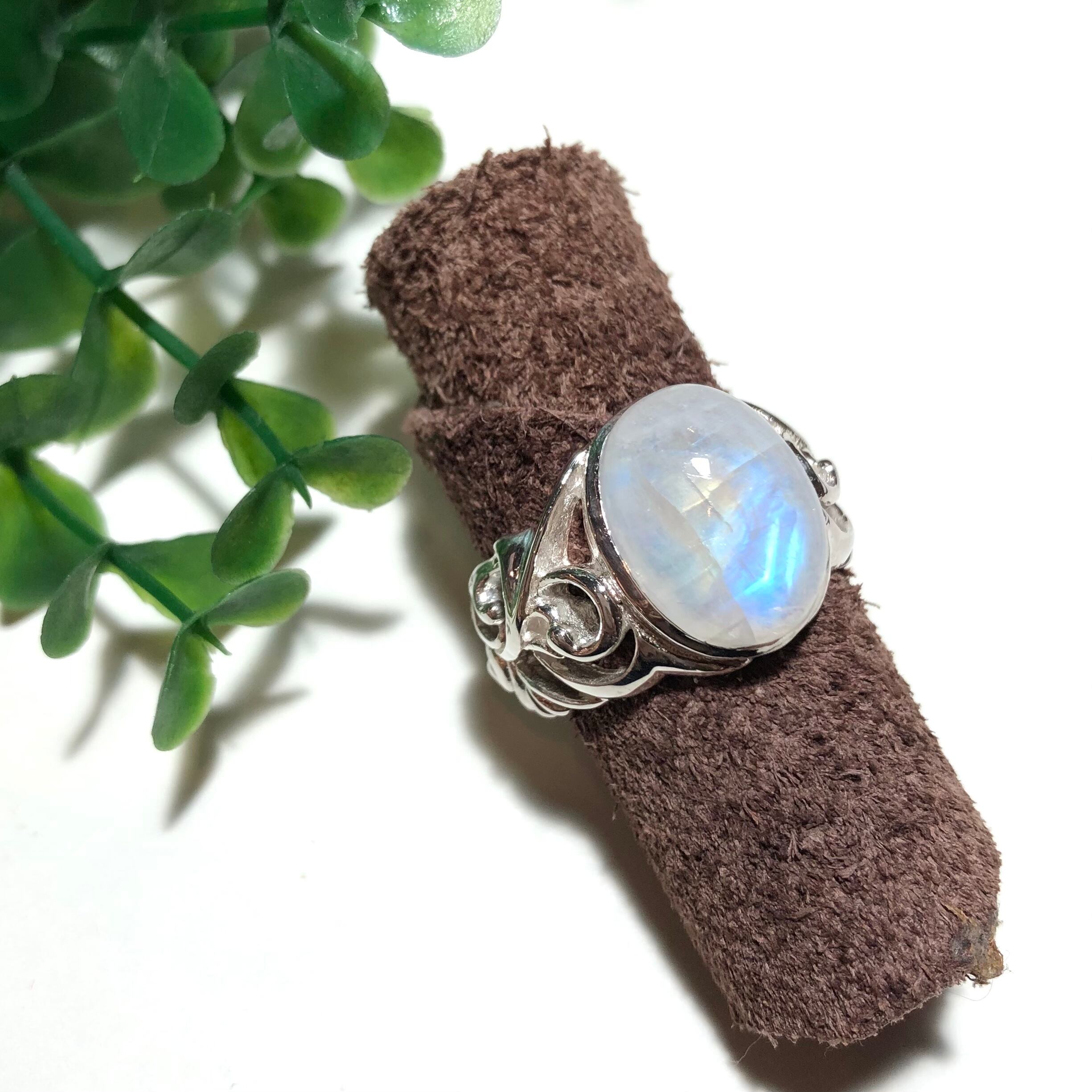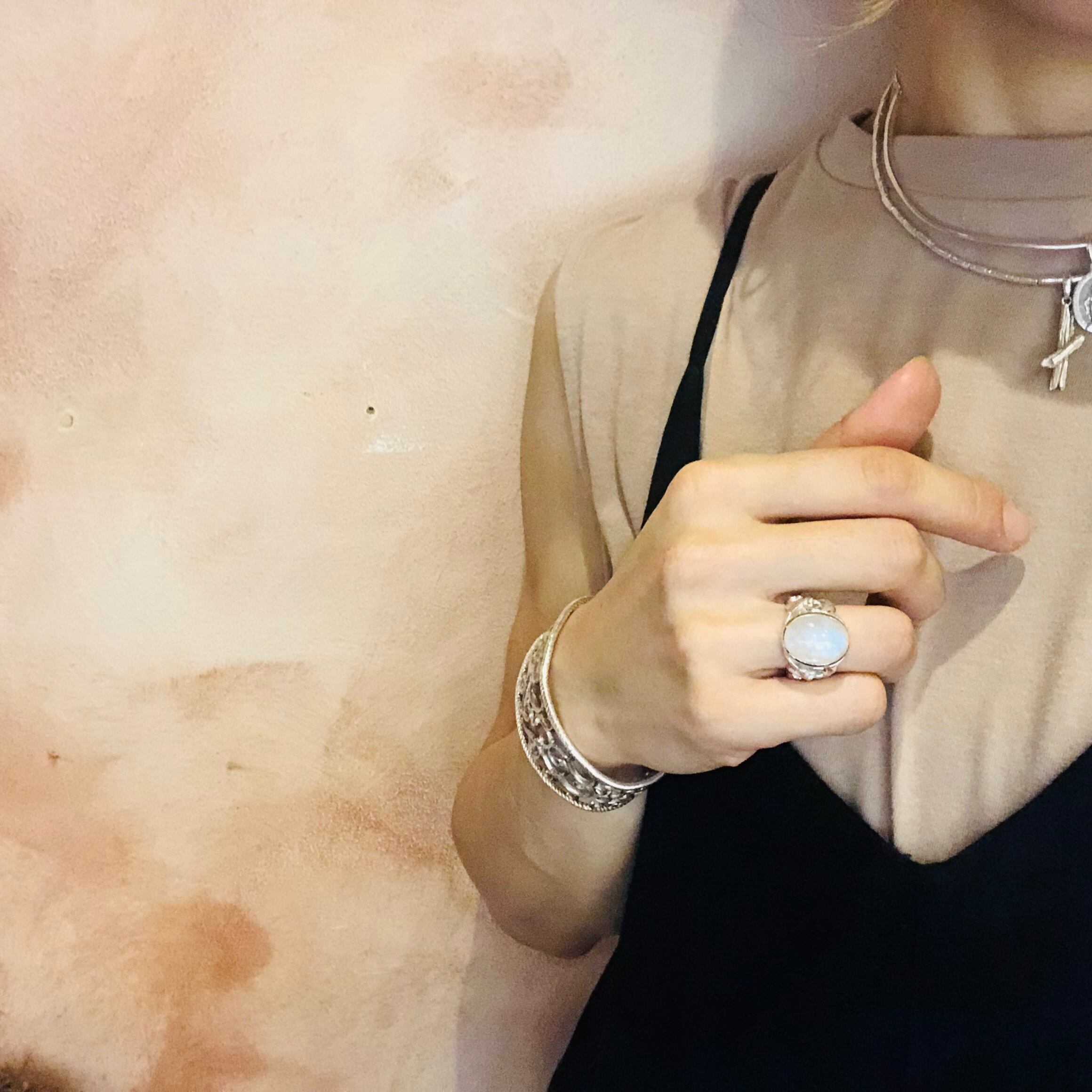 サイズ入荷!純銀製*ムーンストーン唐草リング ボリュームタイプ
