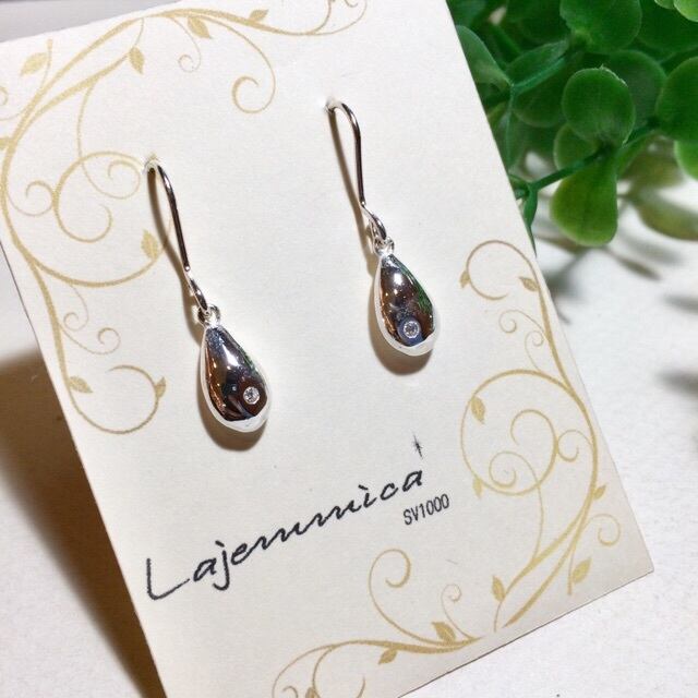 純銀製*しずくピアス ドロップ ジルコニア付き